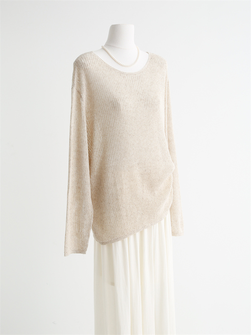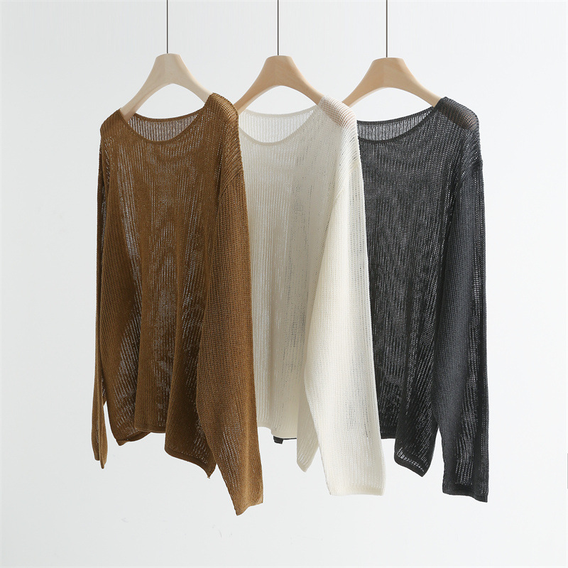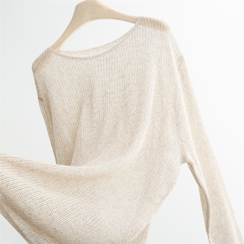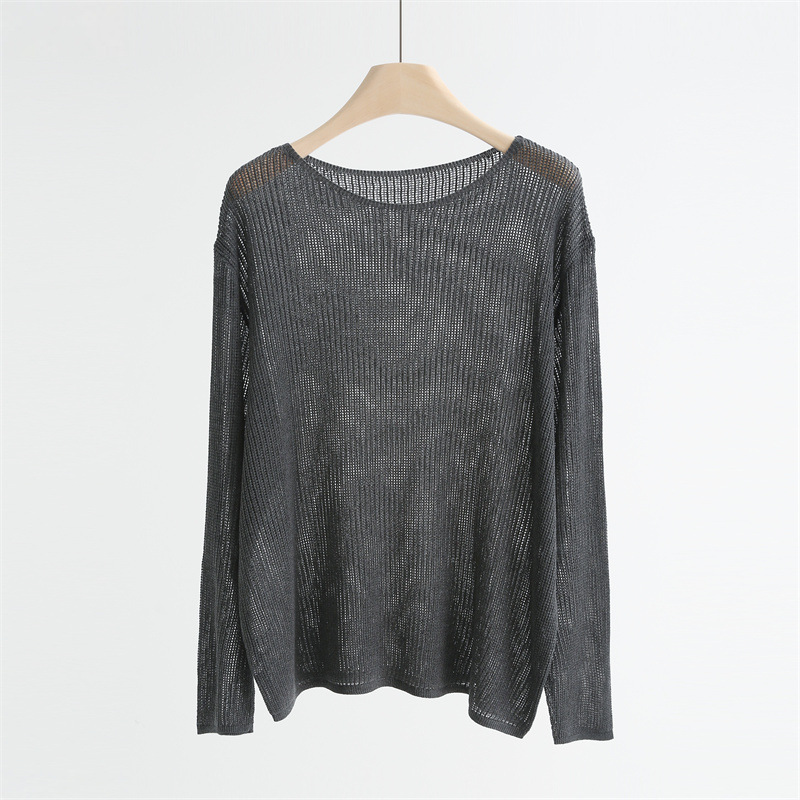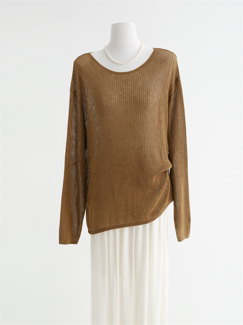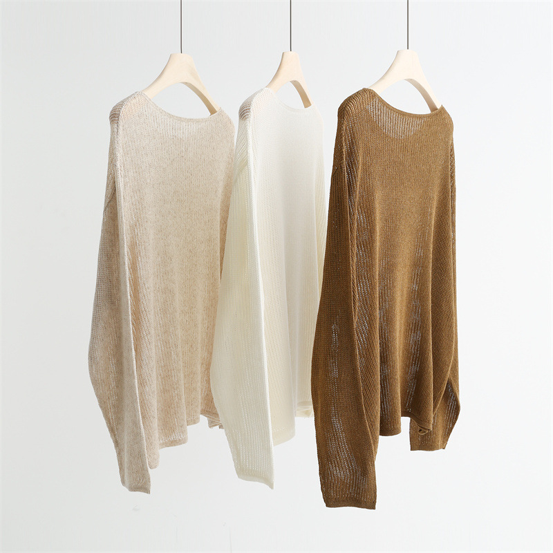 款号:QT1-95021#天丝亚麻圆领网眼罩衫
