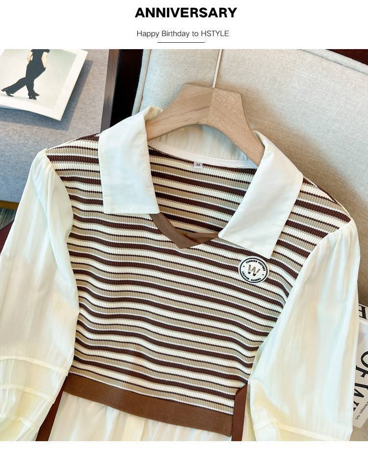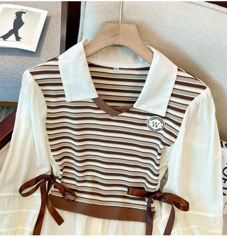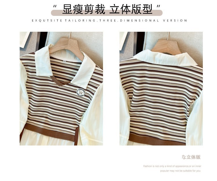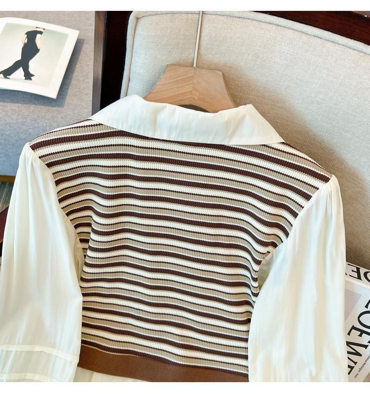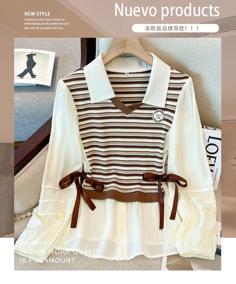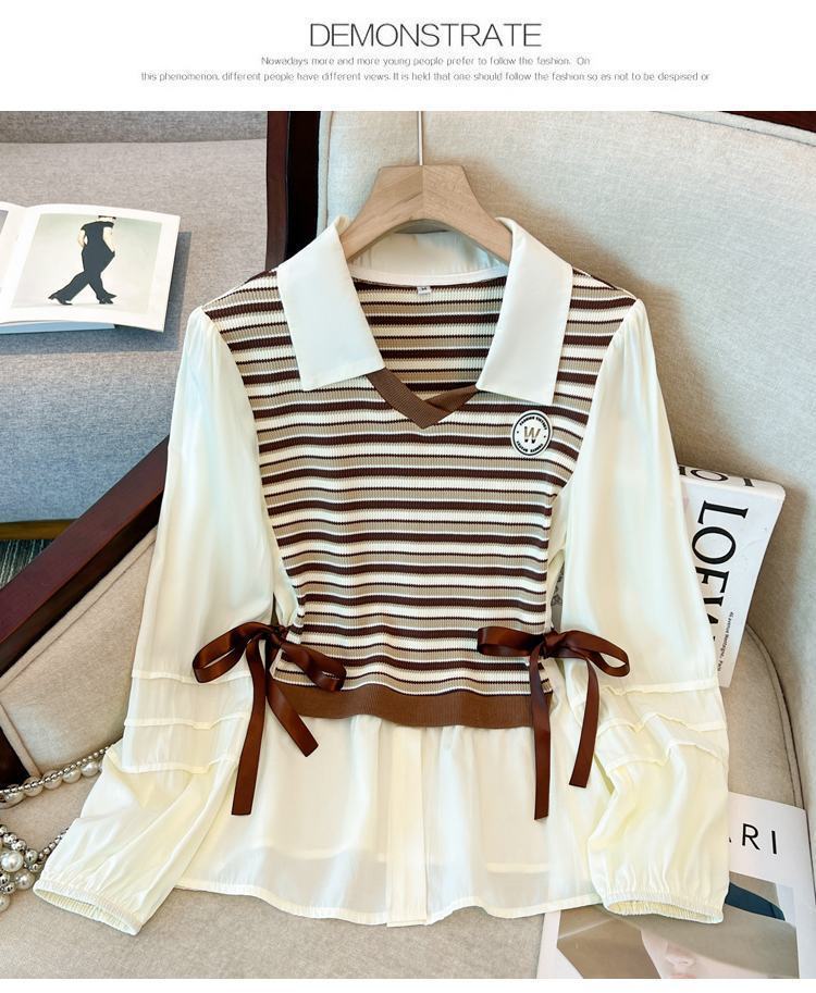가을 2025 년 새로운 한국 스타일 가짜 두 조각 스티칭 반 오픈 칼라 셔츠 여성 디자인 틈새 캐주얼 탑