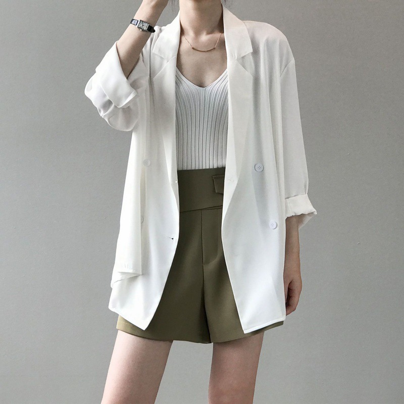 쉬폰 세트 재킷 여성의 봄과 가을 얇은 디자인 틈새 영국 스타일 플러스 사이즈 캐주얼 선 스크린 세트스토어 가기