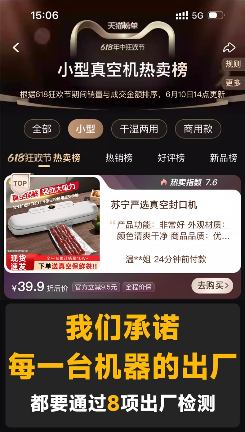 Suning 진공 밀봉 기계 작은 가정용 자동 진공 기계 식품 방부제 밀봉 플라스틱 밀봉 기계 847스토어 가기