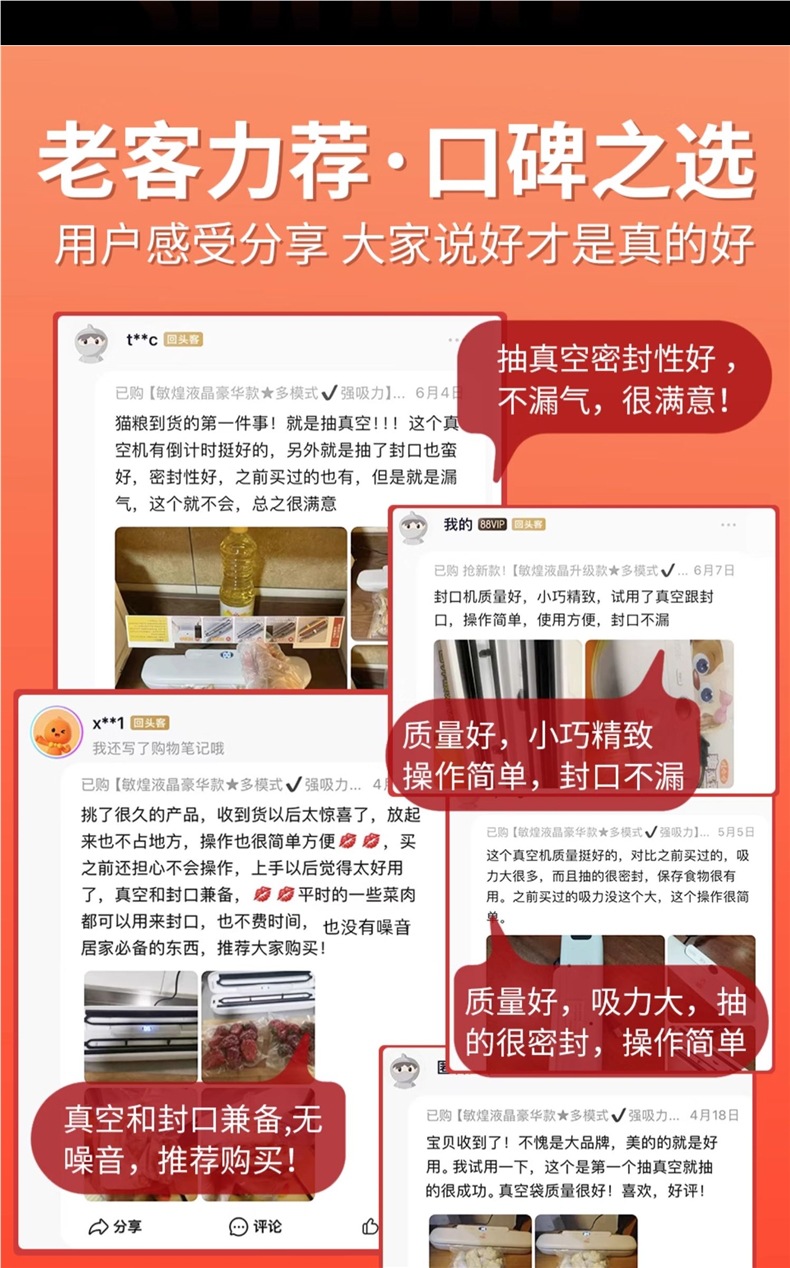 • NO.1 칭찬 [민황 LCD 고급 모델★다중 모드✔강력한 흡입력] 신선보관봉투 210개 증정