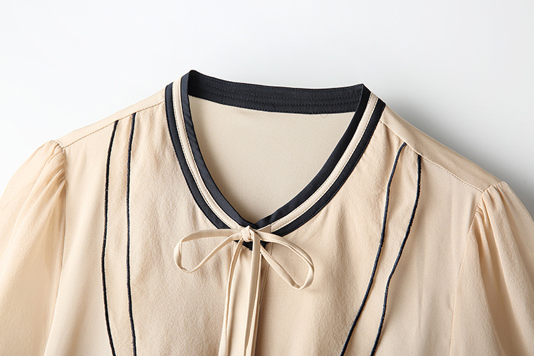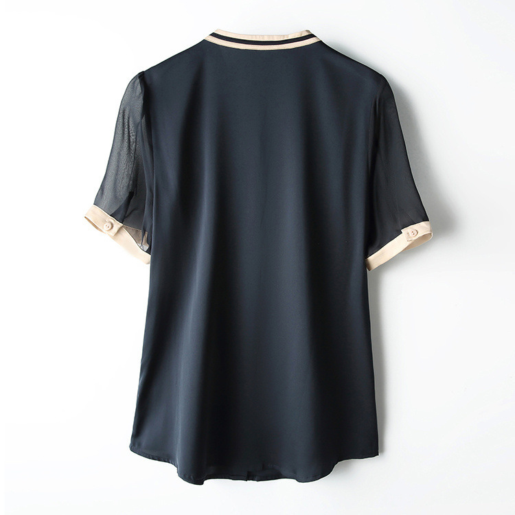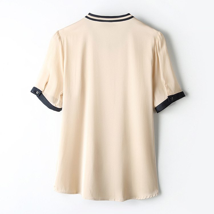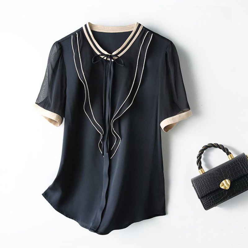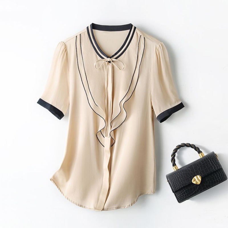 헤비 실크 셔츠 여성 2025 년 여름 새로운 반팔 프랑스 디자인 센스 니쉬 귀 테두리 뽕나무 실크 탑