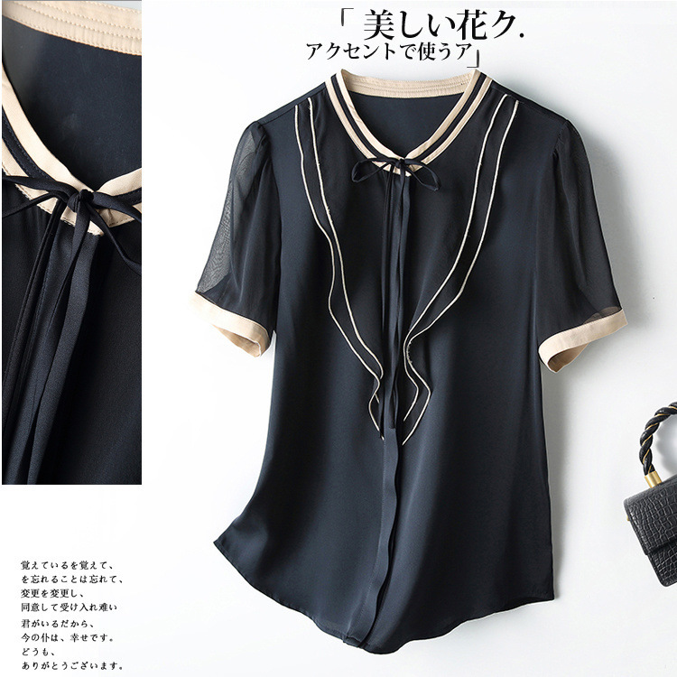헤비 실크 셔츠 여성 2025 년 여름 새로운 반팔 프랑스 디자인 센스 니쉬 귀 테두리 뽕나무 실크 탑스토어 가기