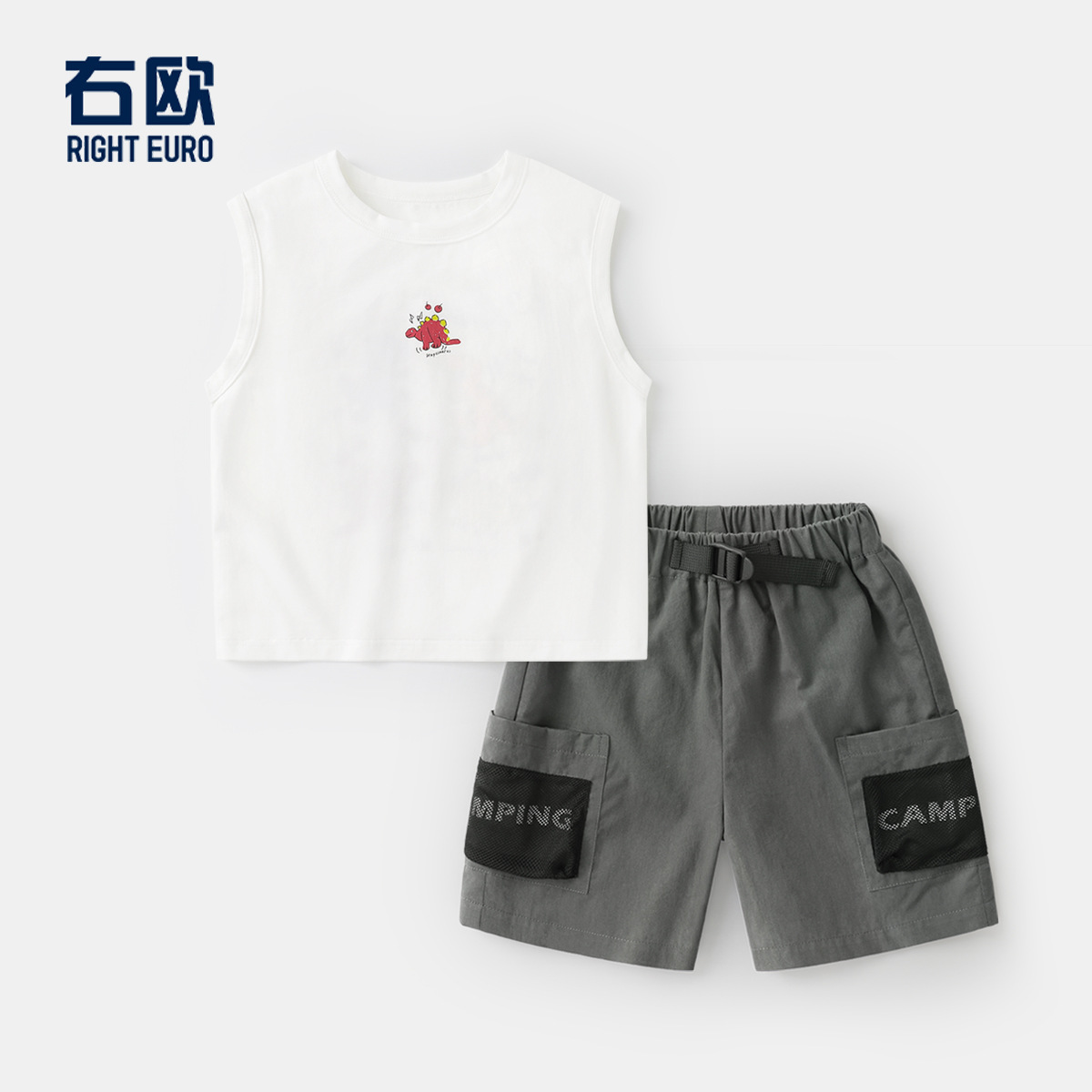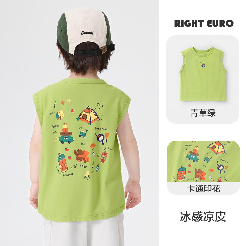 오른쪽 유럽 소년 조끼 여름 옷 2025 새로운 아동 의류 아동용 아기 소년 민소매 티셔츠 여름 얇은스토어 가기