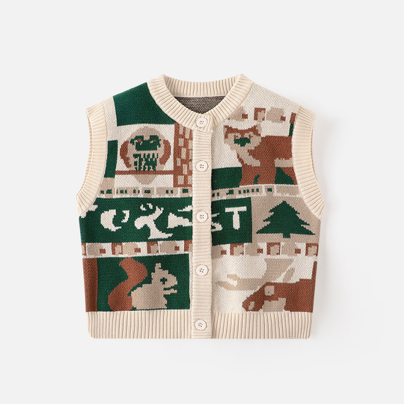소년 니트 카디건 한국식 만화 더블 레이어 따뜻한 코튼 조끼 봄과 가을 자카드 크루 넥 조끼 어린이 스웨터스토어 가기