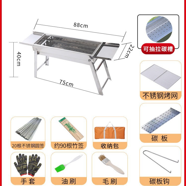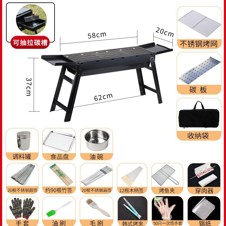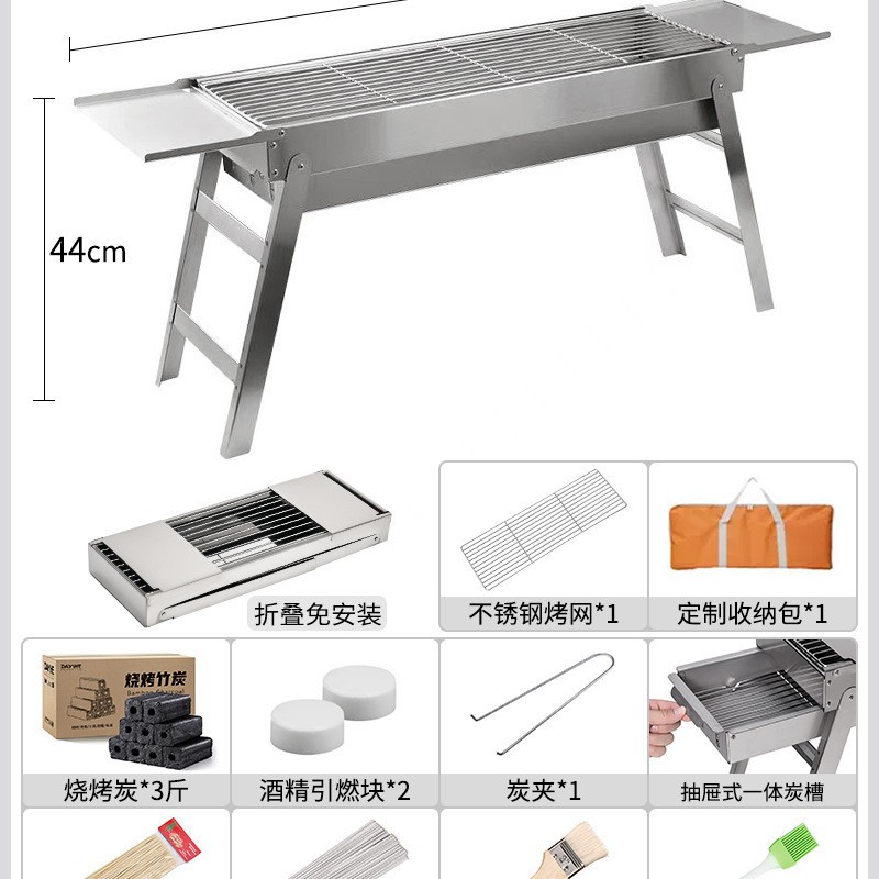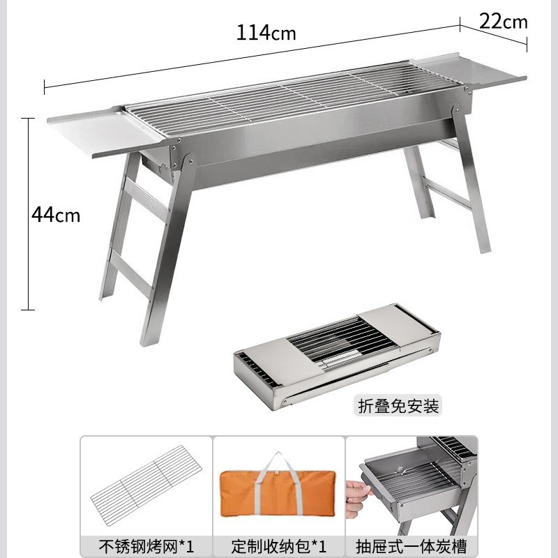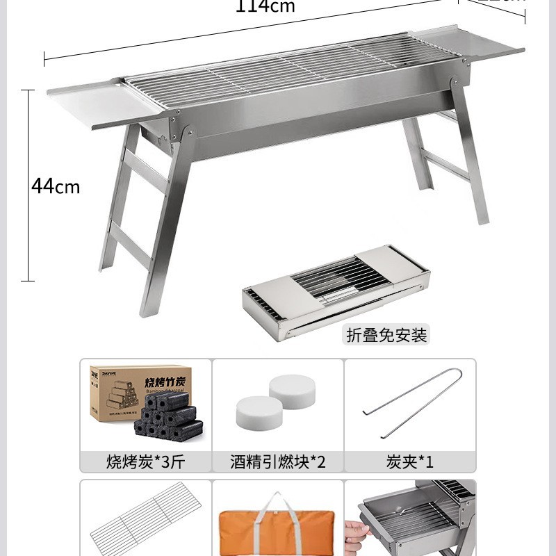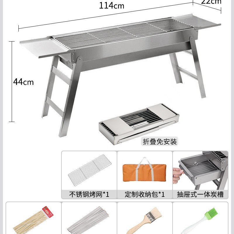 • [일체형 스테인레스] 접이식 바베큐 그릴 [꼬치 10개 세트] + 카본 1.5kg개