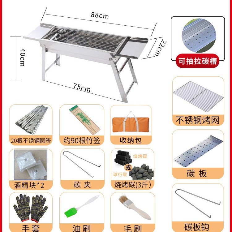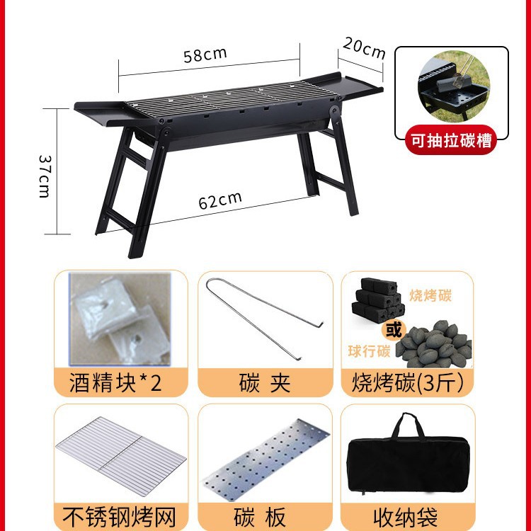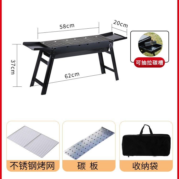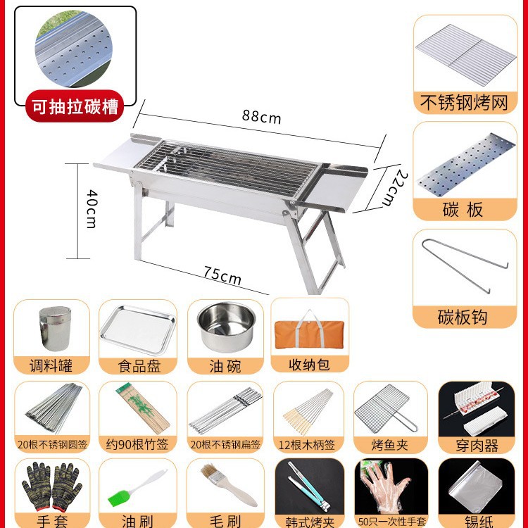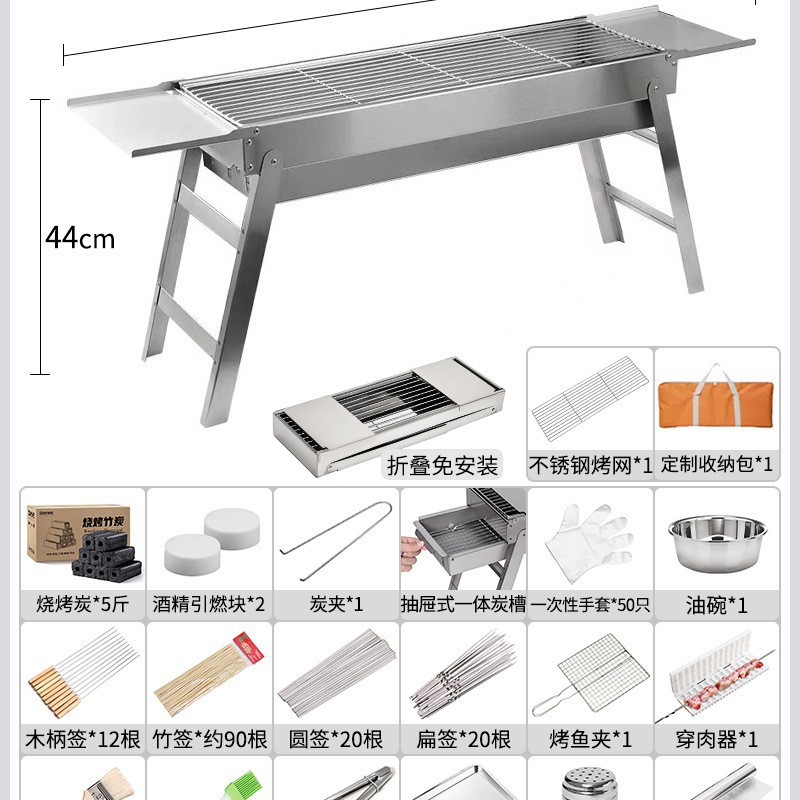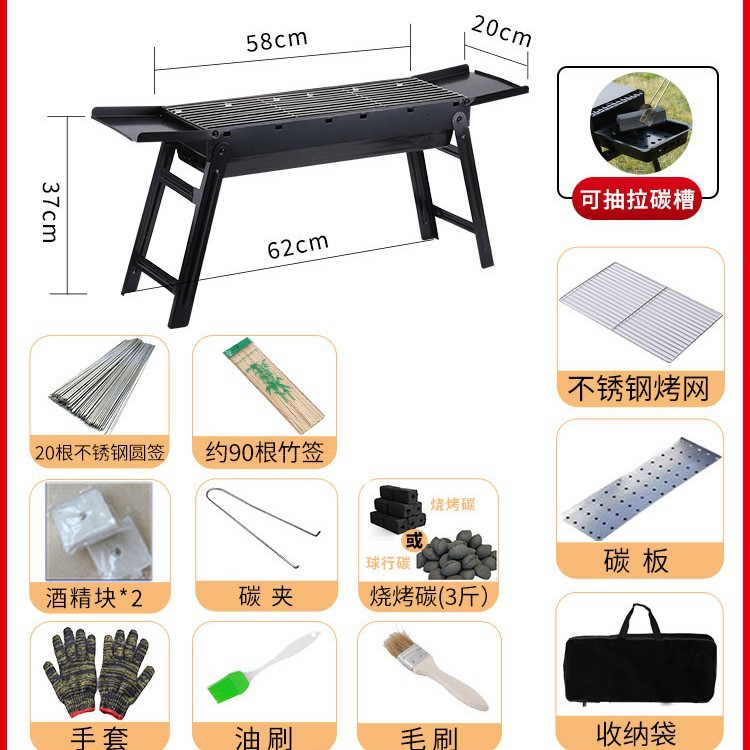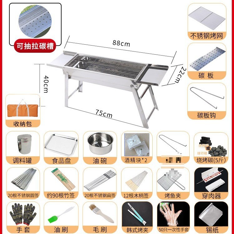• [일체형 스테인레스] 접이식 바베큐 그릴 [꼬치 10개 세트] + 카본 1.5kg개