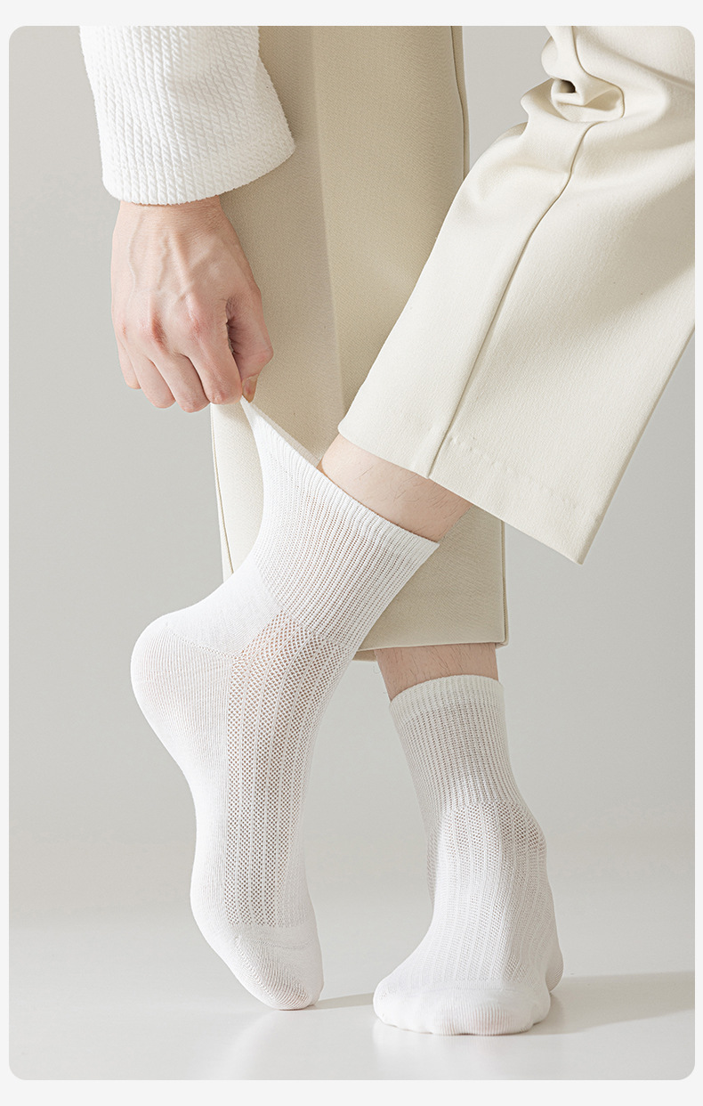 Zhuji 양말 남성용 땀 흡수 통기성 단색 통근 종아리 양말 봄 흰색 일본식 jk 작은 가죽 신발 양말 면