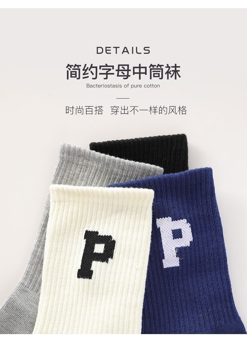 여성용 맞춤형 양말 한국어 버전 봄, 가을 중간 튜브 일본식 ins 문자 p 스포츠 스포츠 캐주얼 양말 커플 트렌디 양말 고탄성스토어 가기