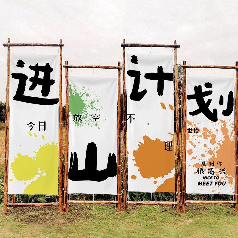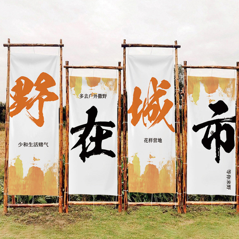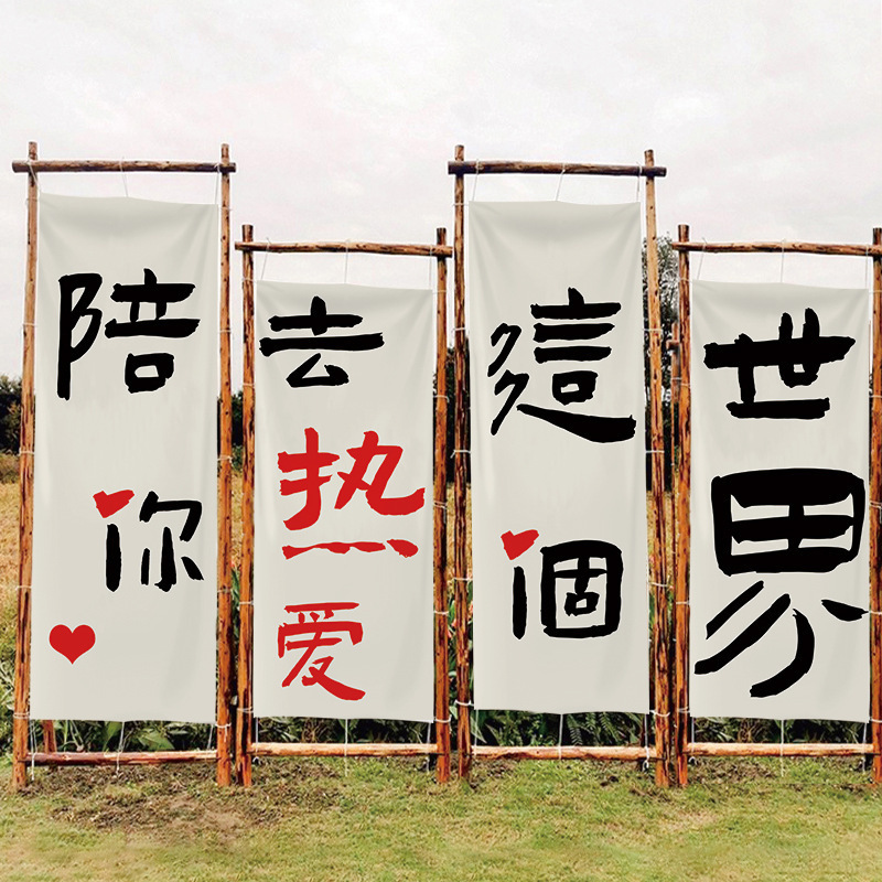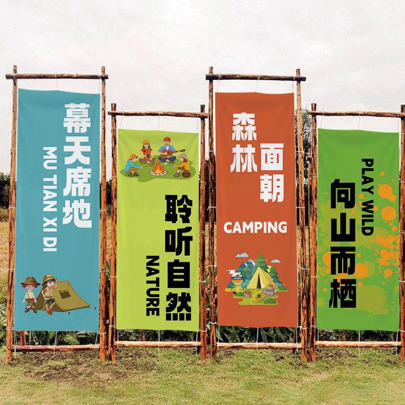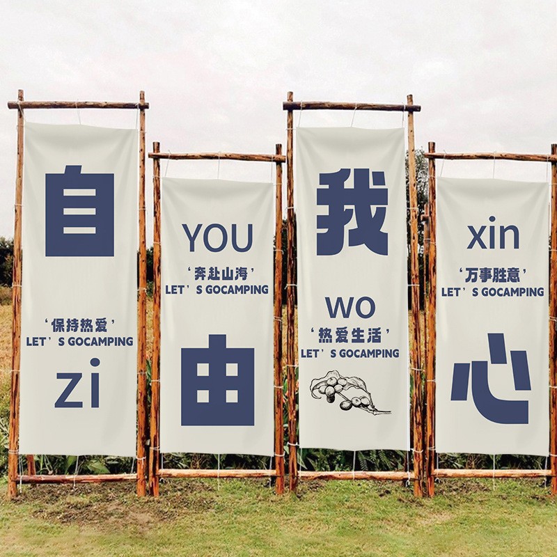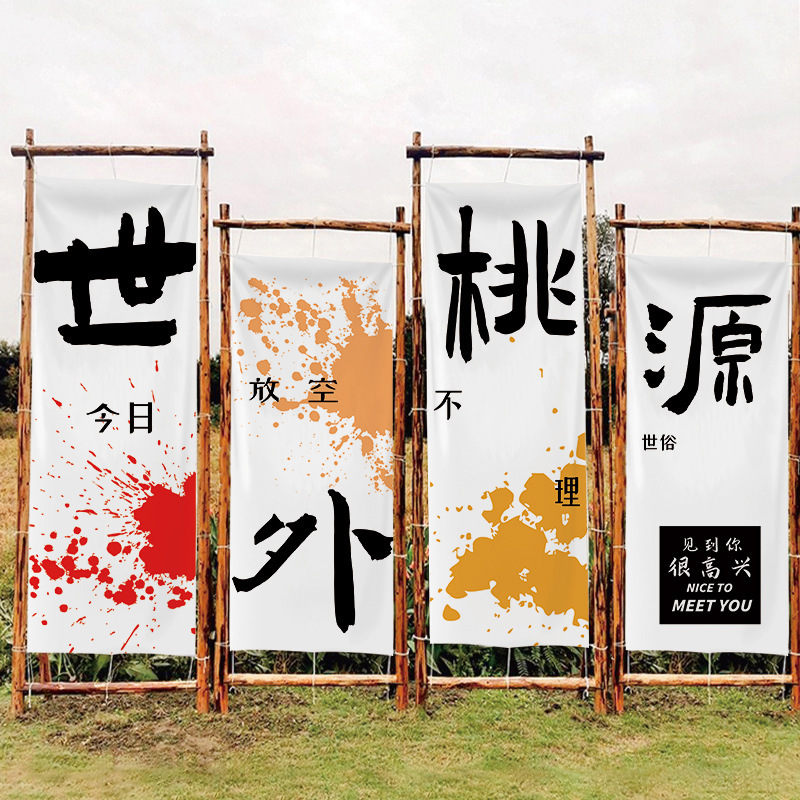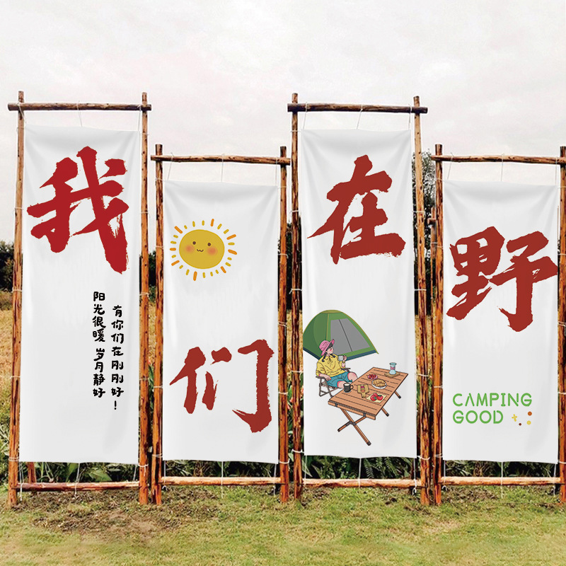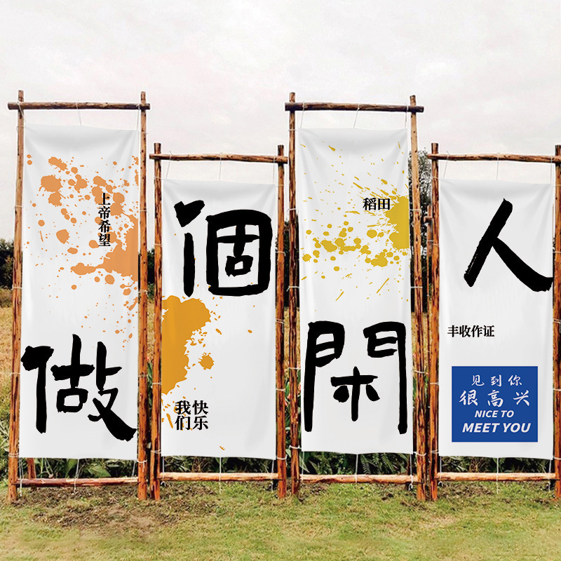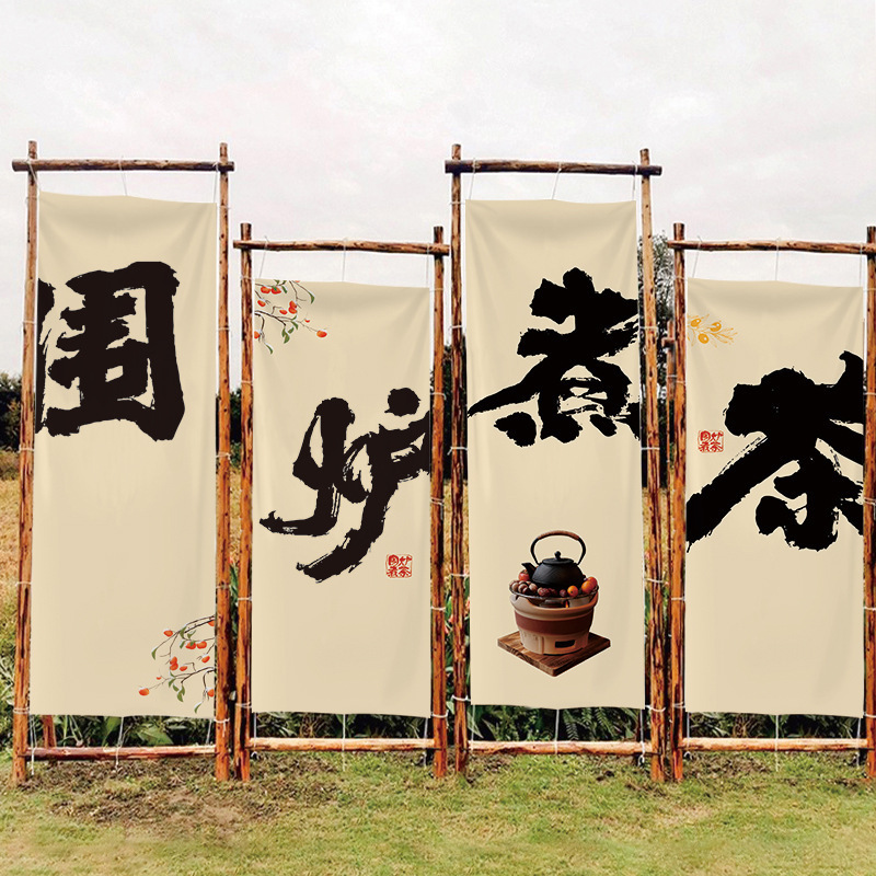 야외 Taibao 간판 배경 차 농장 나무 프레임 밀 걸이 천 배너 깃발 분위기 난로 캠핑 장식