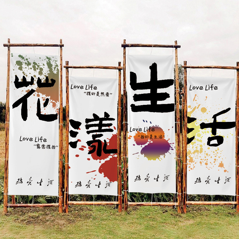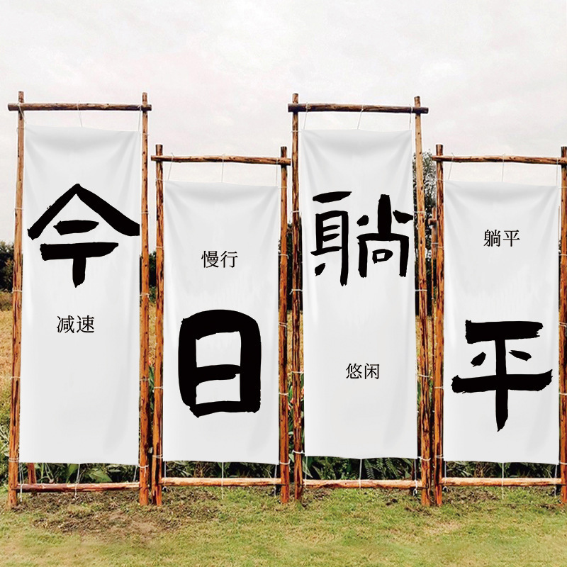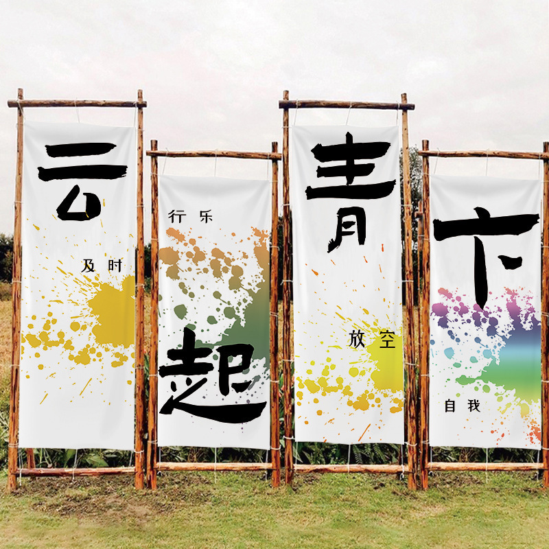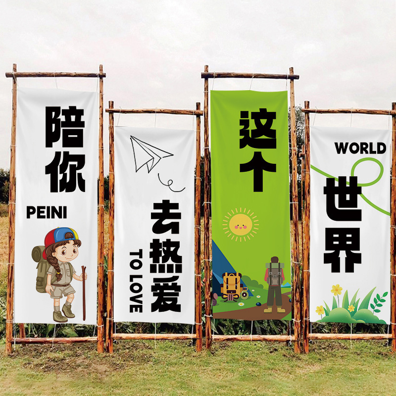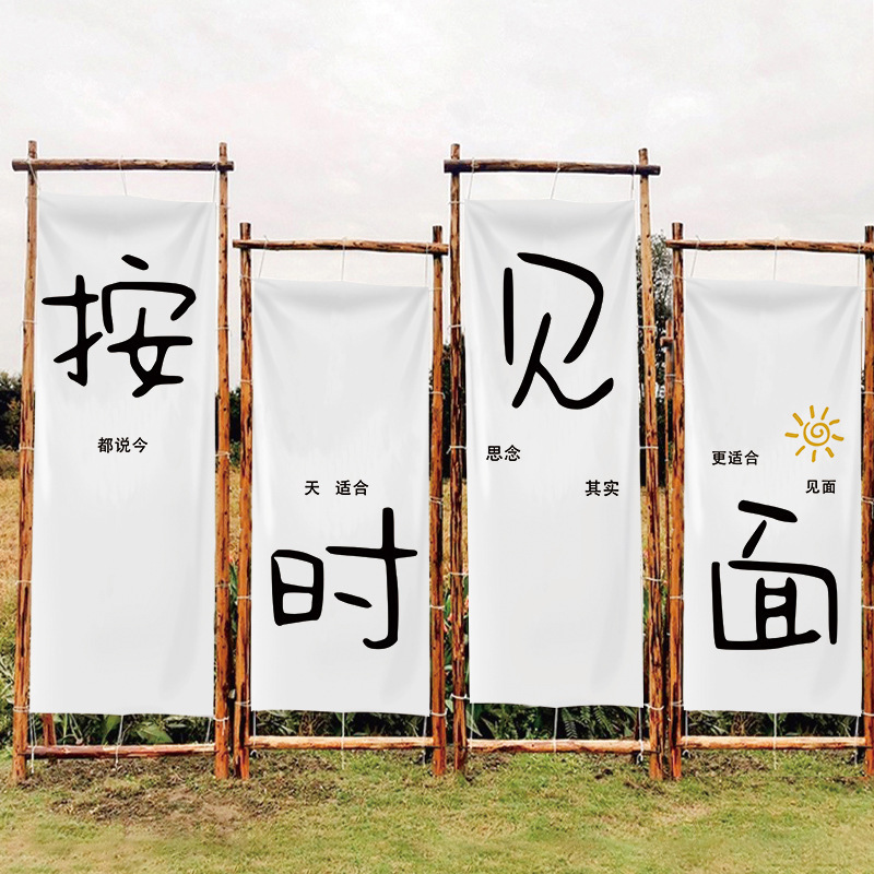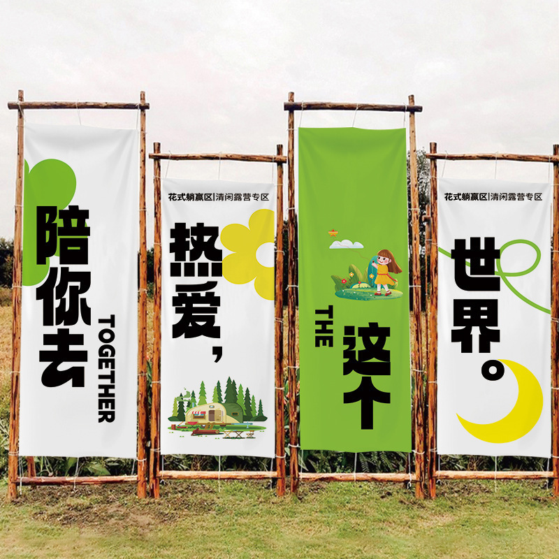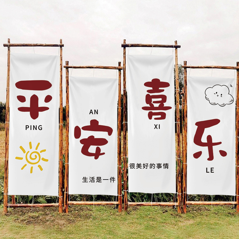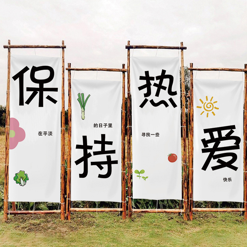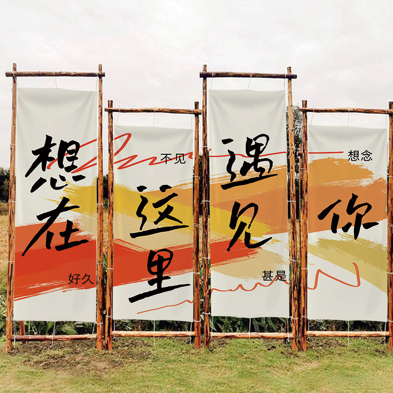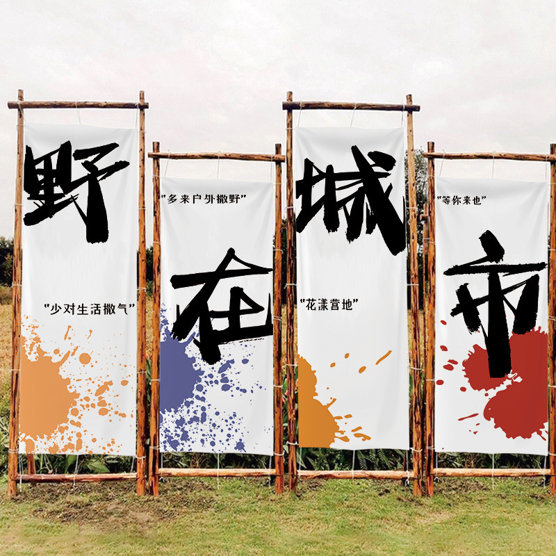 야외 Taibao 간판 배경 차 농장 나무 프레임 밀 걸이 천 배너 깃발 분위기 난로 캠핑 장식