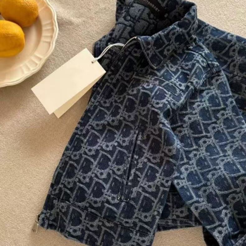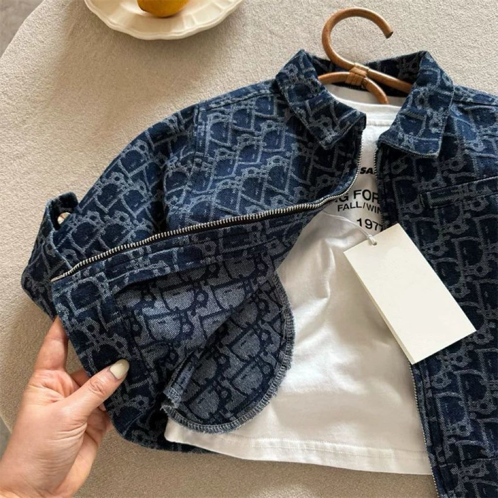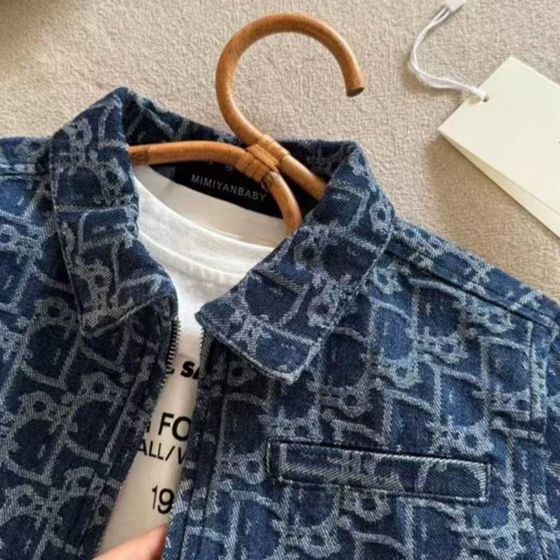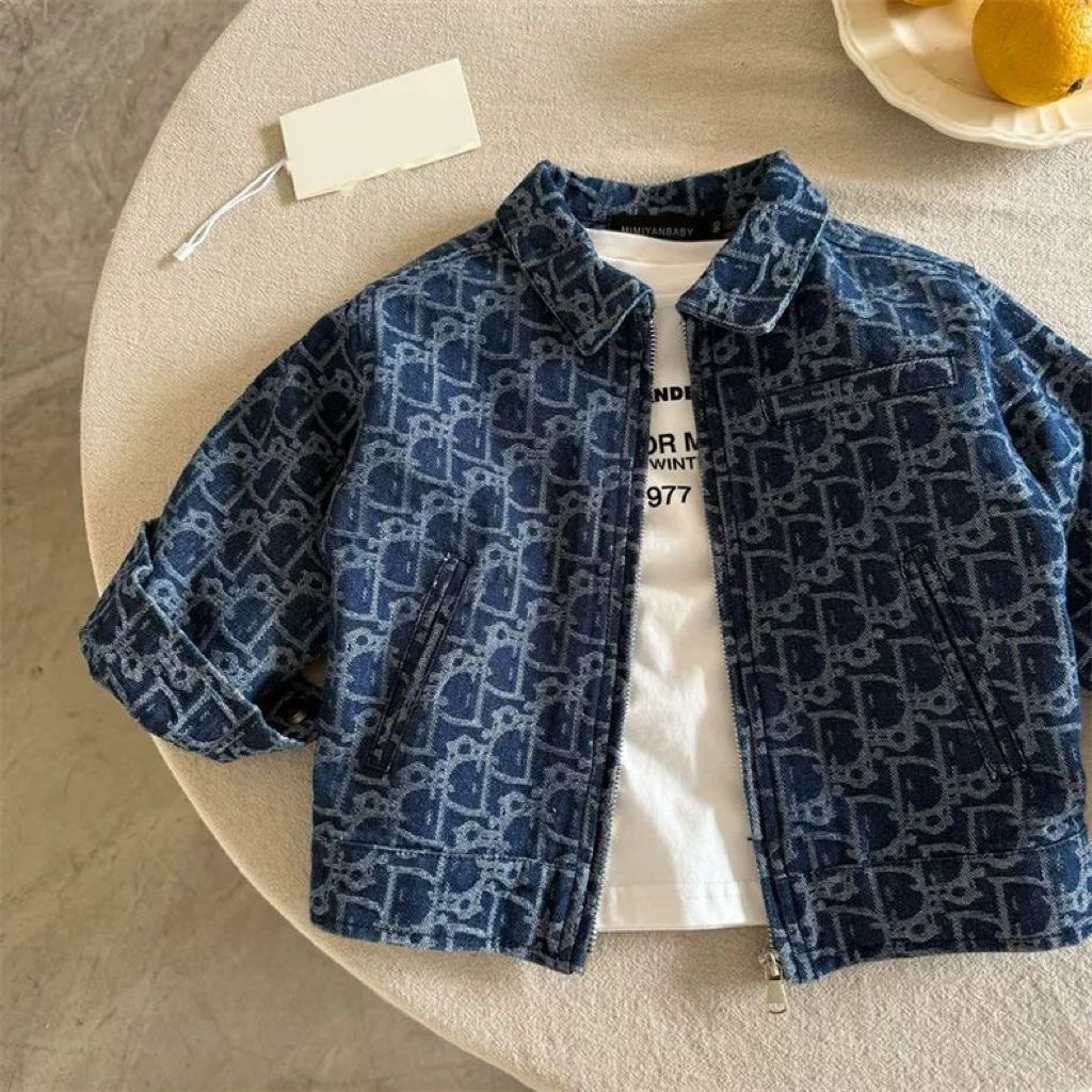 2025 유행 브랜드 어린이 데님 코트 봄과 가을 새로운 도착 자카드 지퍼 셔츠 한국 옷깃 재킷스토어 가기