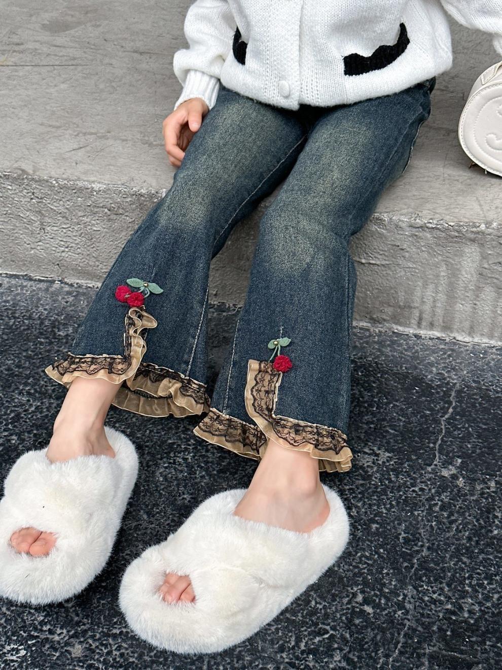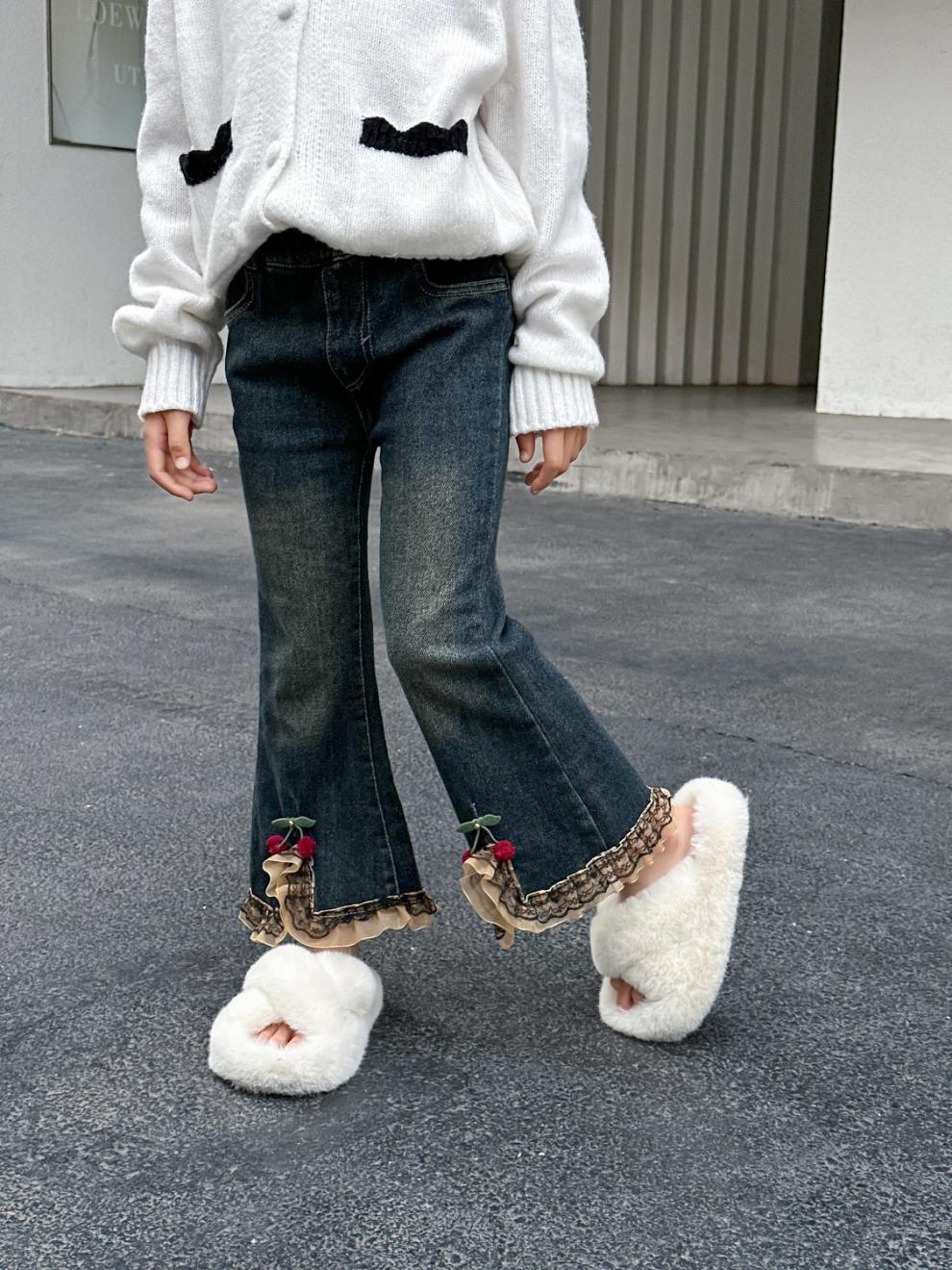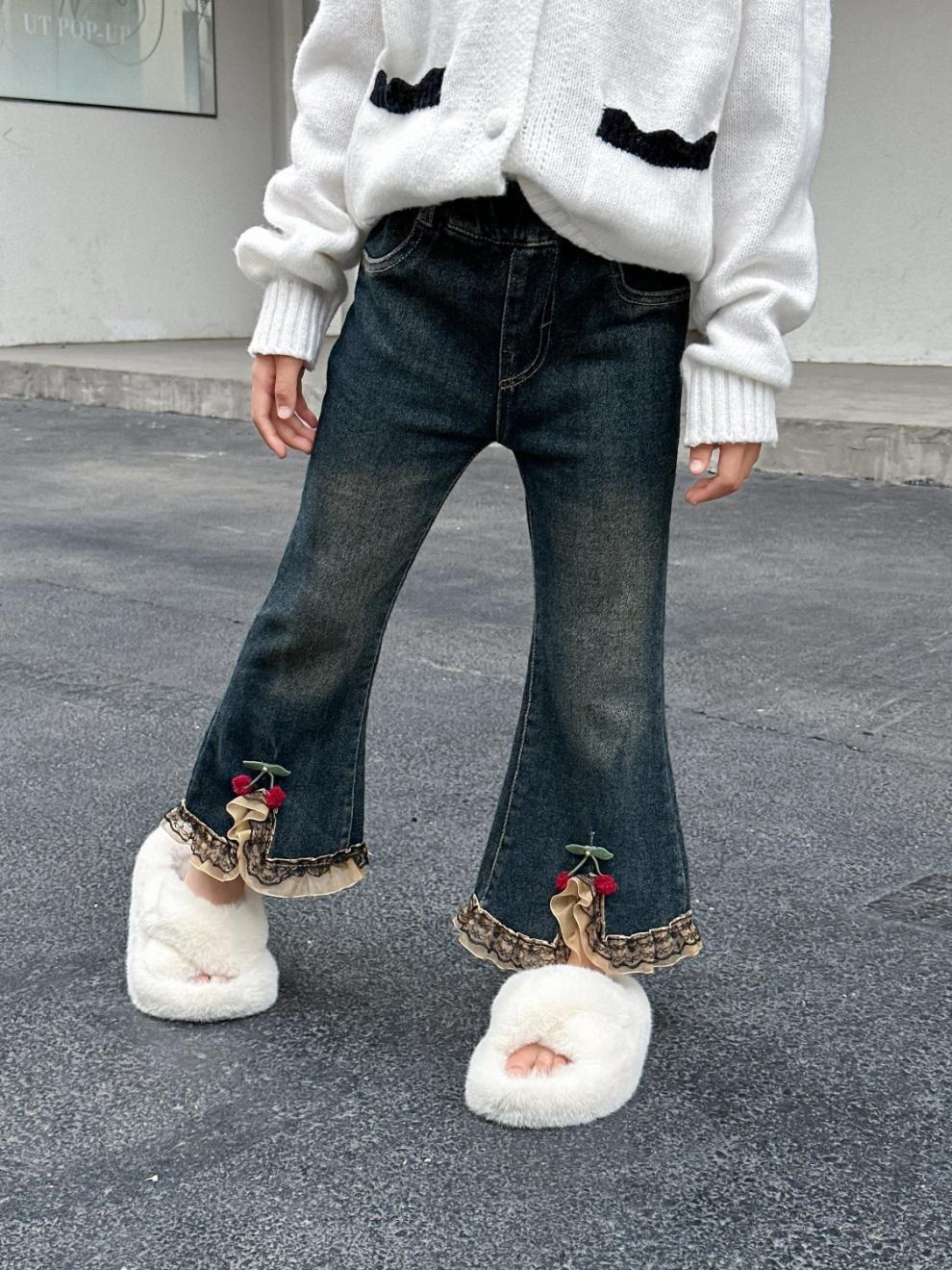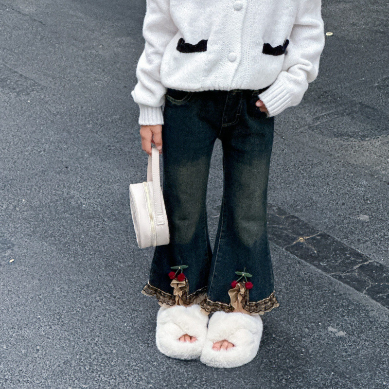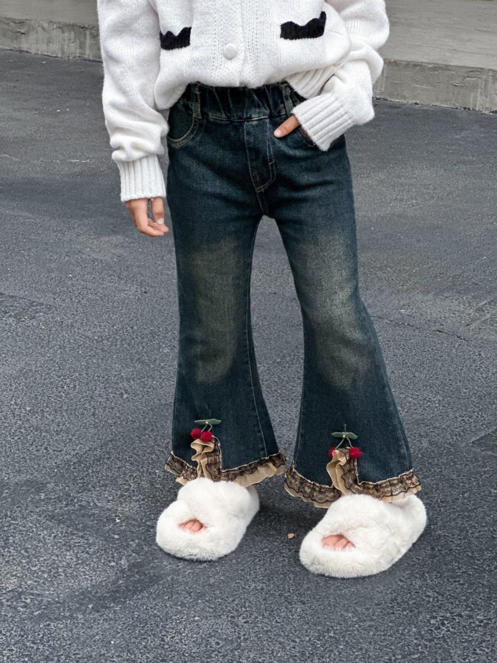 소녀 탄성 바지 봄과 가을 한국 스타일 2025 새로운 어린이 외모 바지 아기 소녀의 봄 청바지스토어 가기
