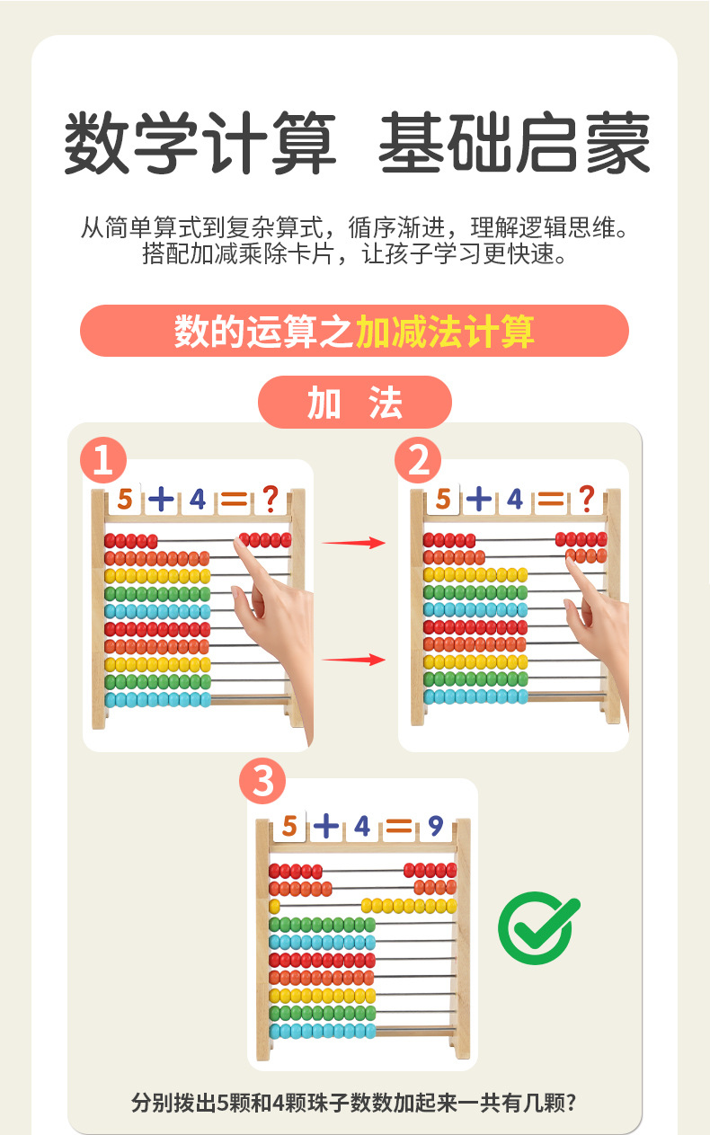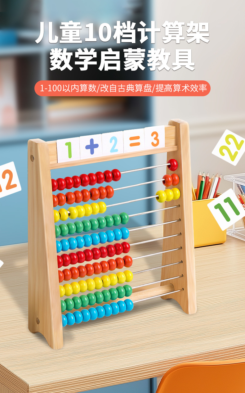 10단계 카운터 어린이 학습 도구 초등학교 1학년 수학 교육 보조 산술 유물 단단한 나무 주판 계산 스탠드스토어 가기