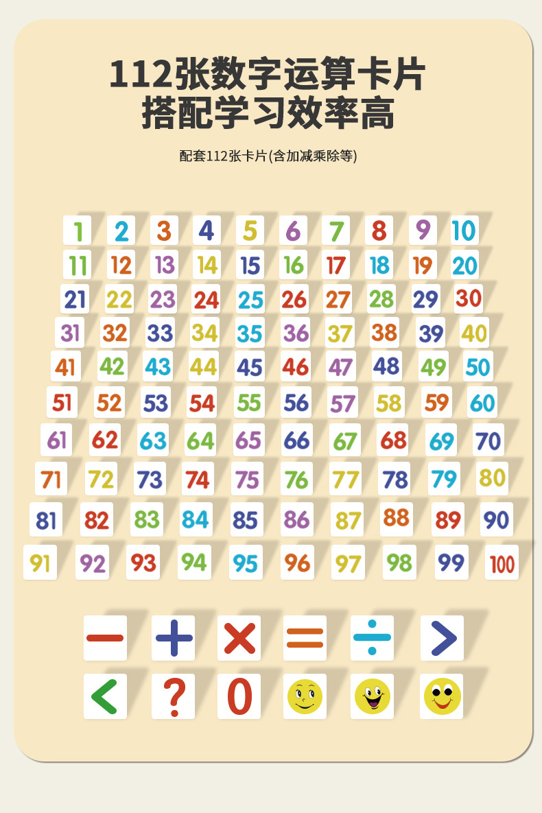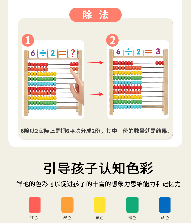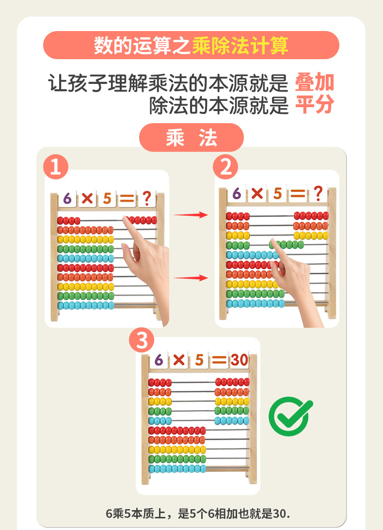 • 몬테소리 10단 단단한 나무 계산대(덧셈 및 뺄셈표 + 곱셈 및 나눗셈표 + 쓰기 가능한 펜 1개 포함) 영어 색상 상자 포장