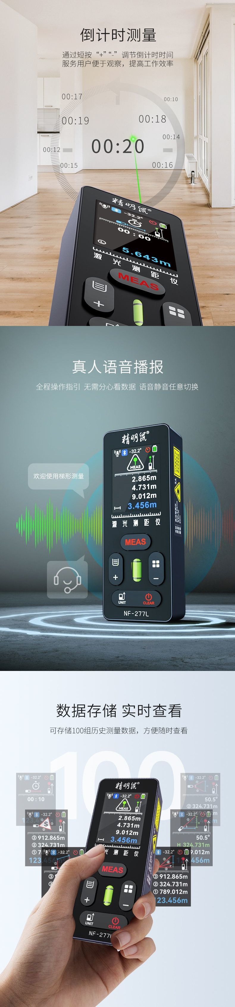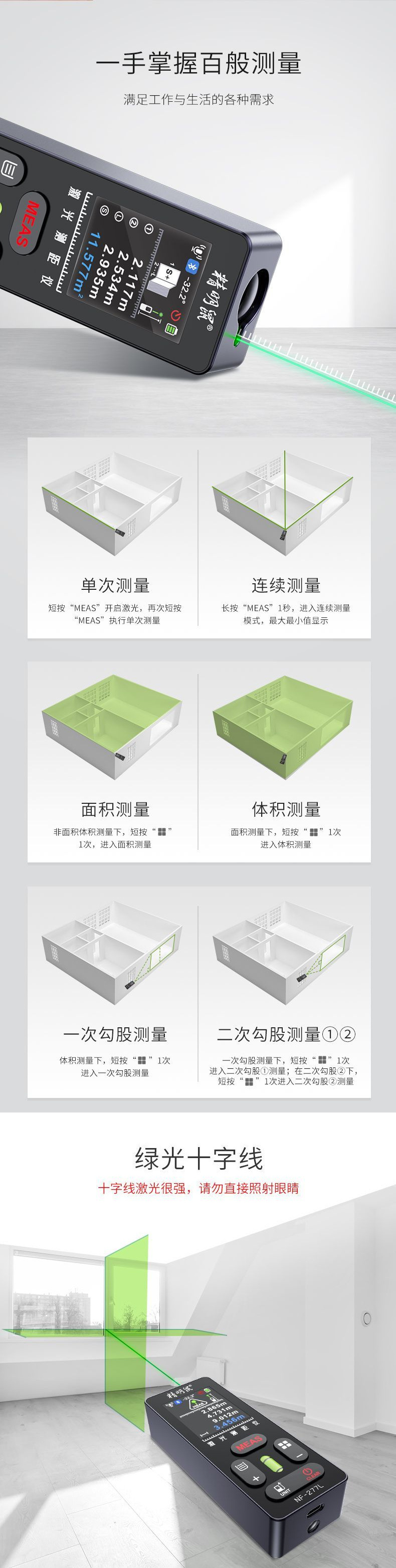 • 【 100m 녹색 조명 드로잉】 거리 측정 십자선 + 경사 + 레벨