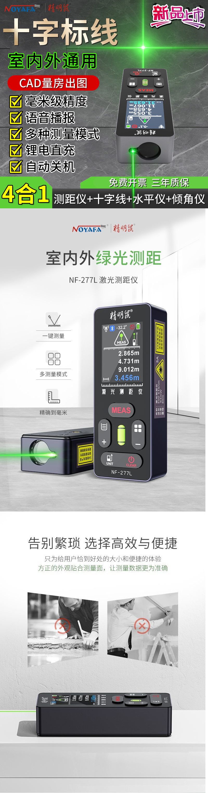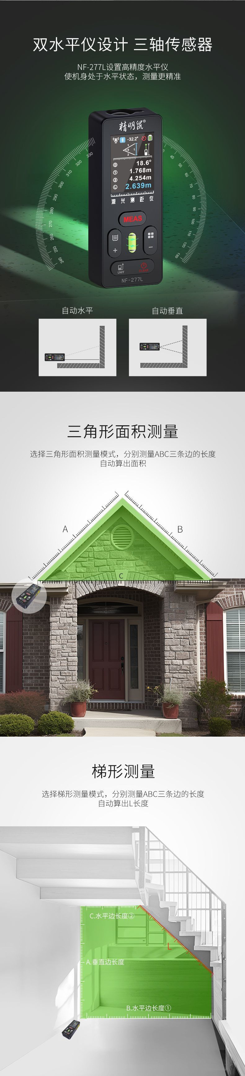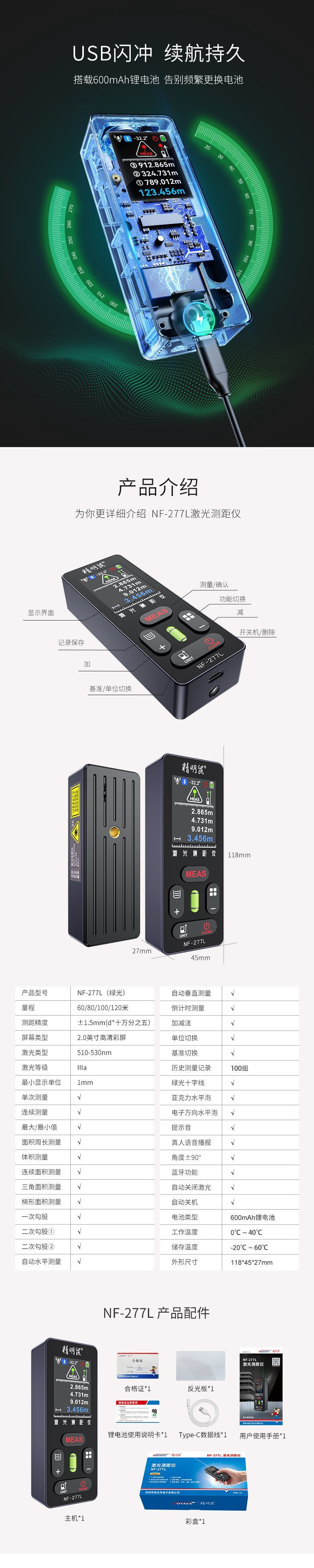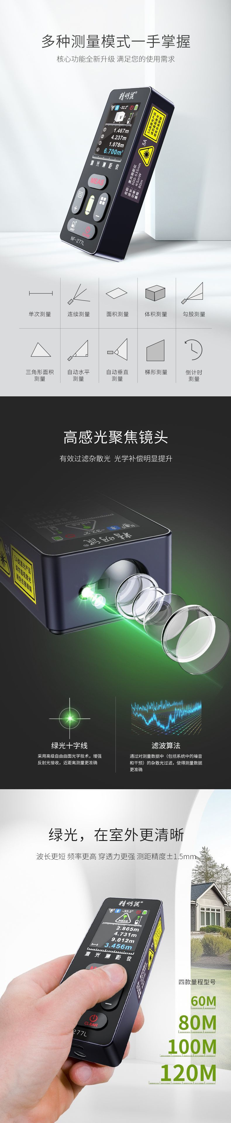 • 【 60m 녹색등 】-거리 측정-십자선 + 경사계 + 레벨 버블