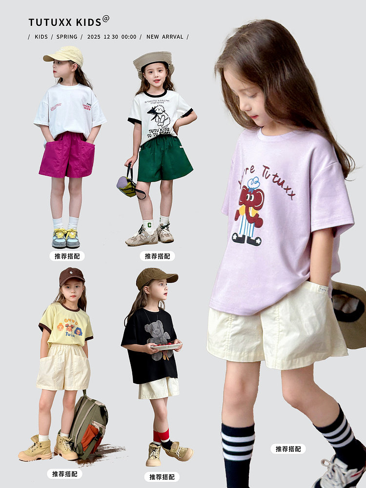 투투 코끼리 소녀의 캐주얼 바지 2025 여름 어린이 새로운 도파민 핫 바지 캐주얼 올 매치 트렌디 반바지