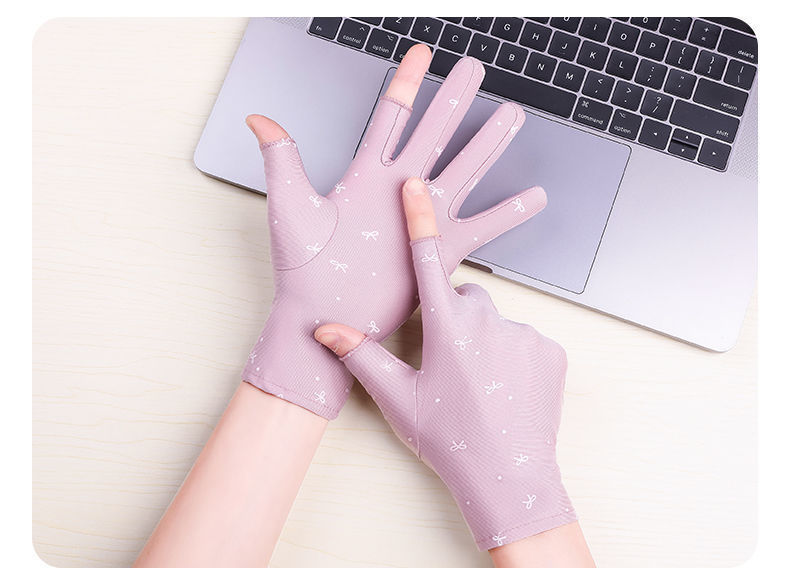 선 스크린 누출 두 손가락 장갑 여성의 여름 초박형 차 따기 운전 운전 봄과 가을 통기성 터치 스크린 아이스 실크 쿨 장갑스토어 가기