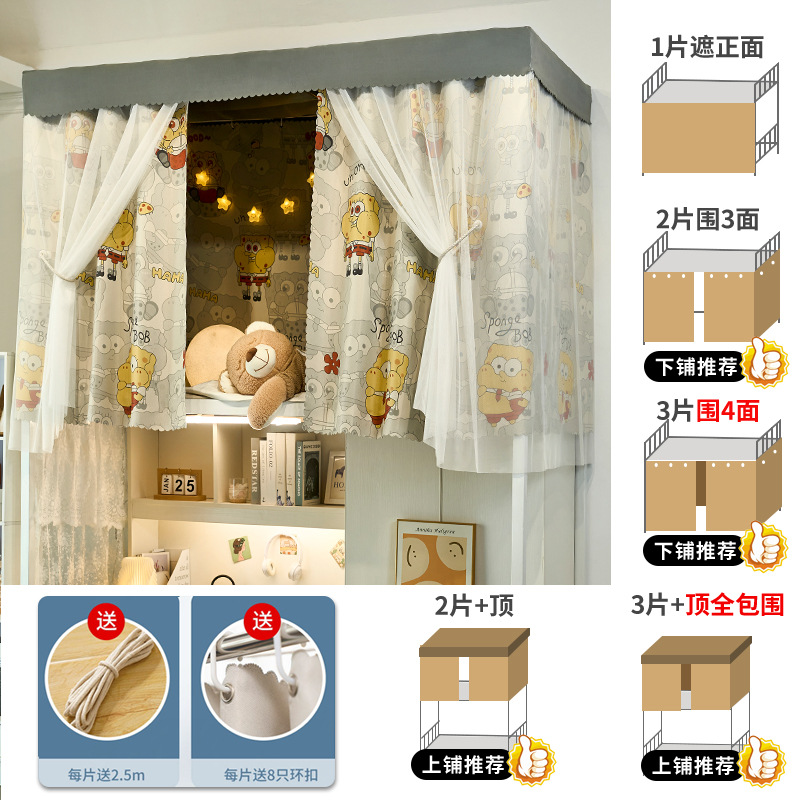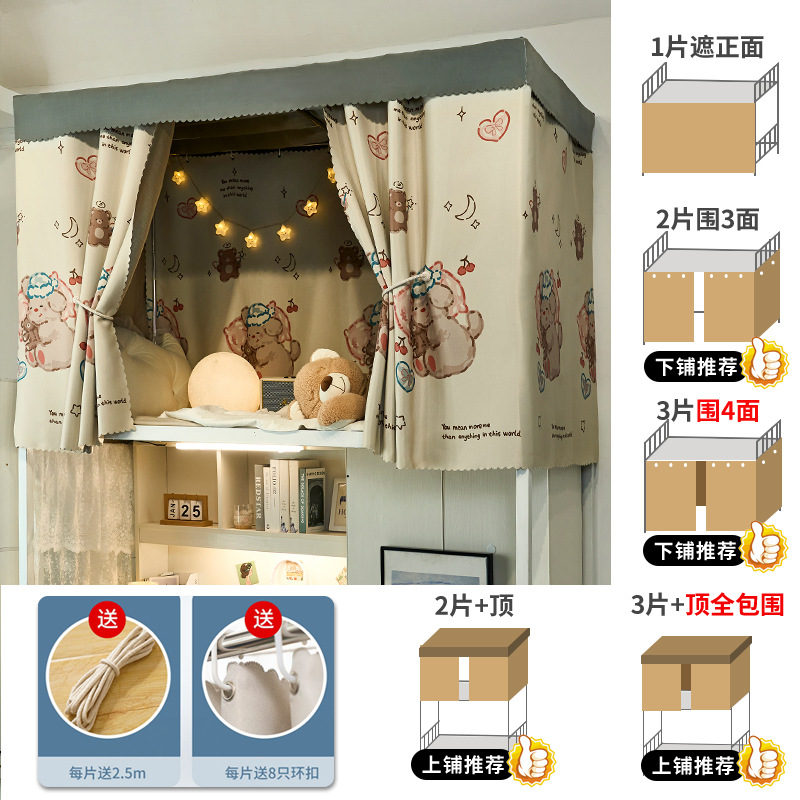 기숙사 침대 커튼 강한 음영 위아래 두꺼운 침실 대학 학생 커튼 커튼 만화 커튼 음영 천 도매스토어 가기