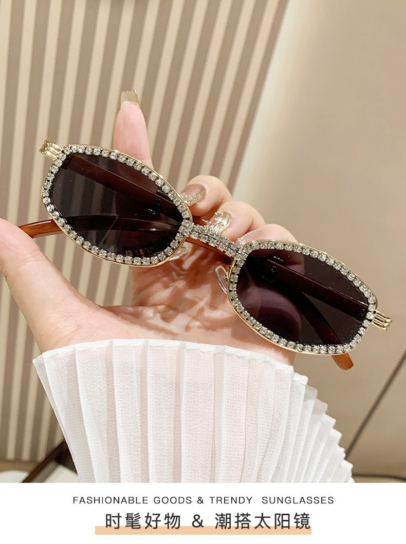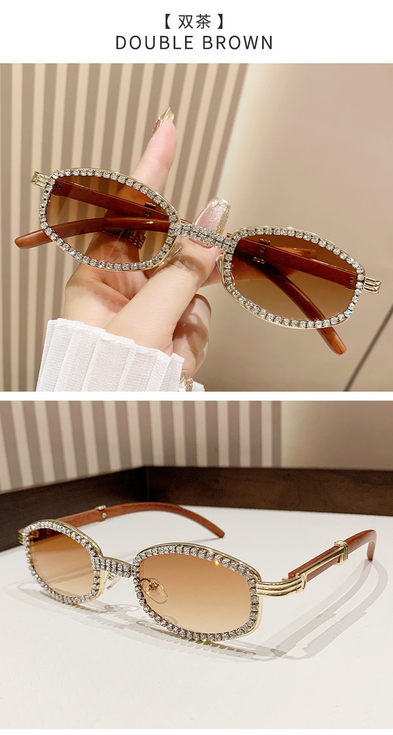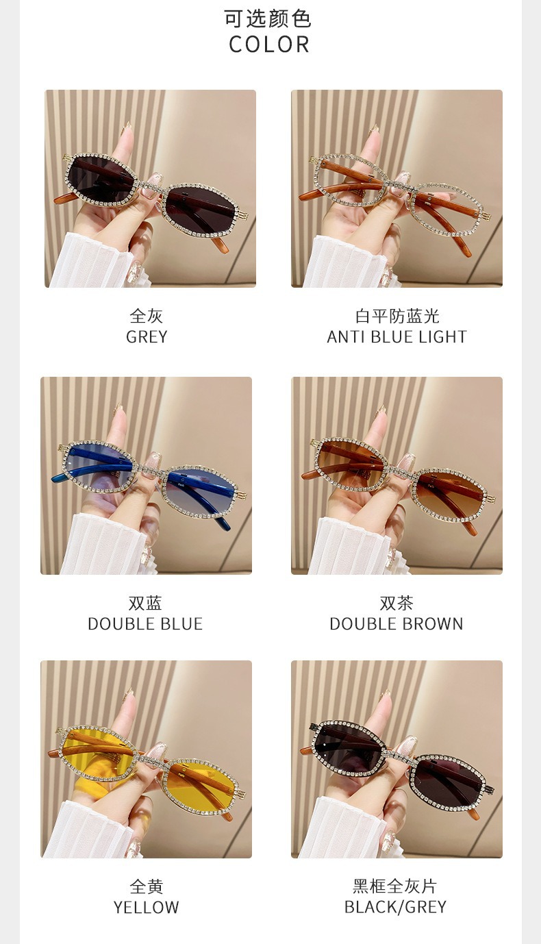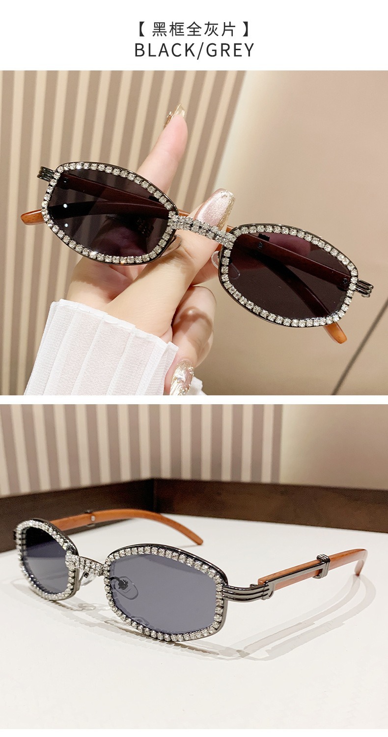 2025 새로운 타원형 선글라스 높은 감각 다이아몬드 유럽과 미국 패션 복고풍 모조 나뭇결 거울 다리 금속 선글라스스토어 가기