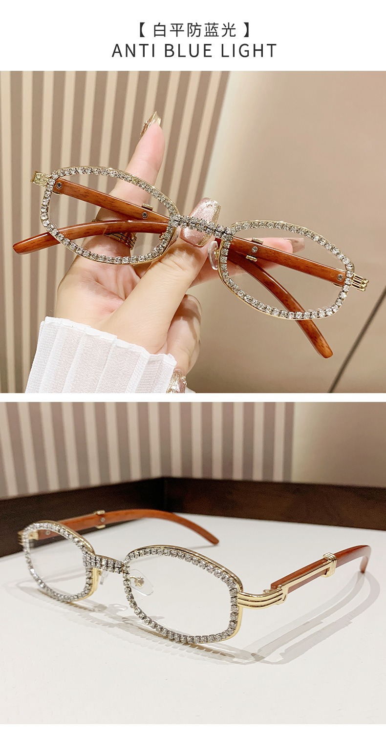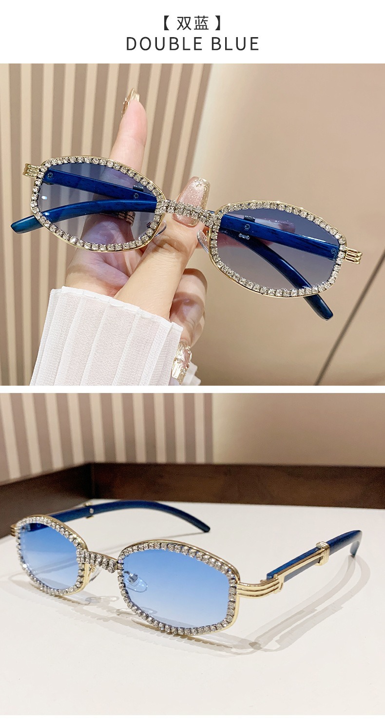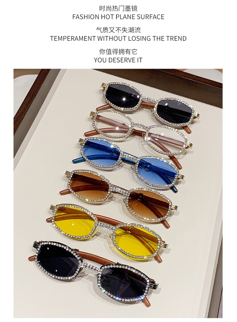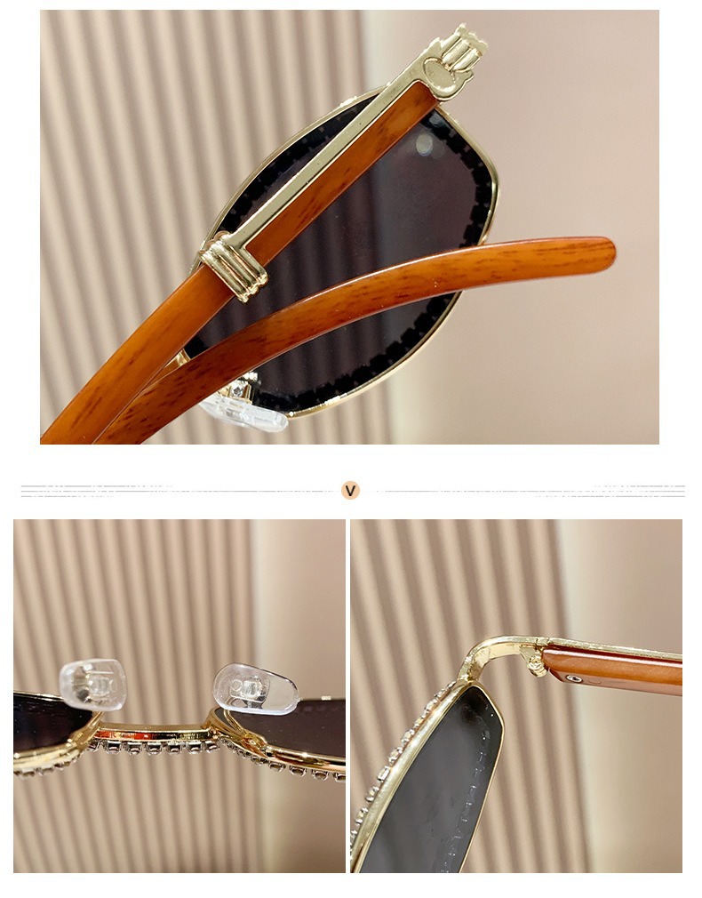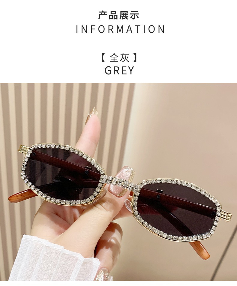 2025 새로운 타원형 선글라스 높은 감각 다이아몬드 유럽과 미국 패션 복고풍 모조 나뭇결 거울 다리 금속 선글라스스토어 가기