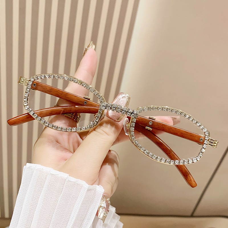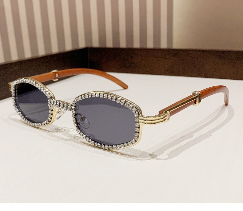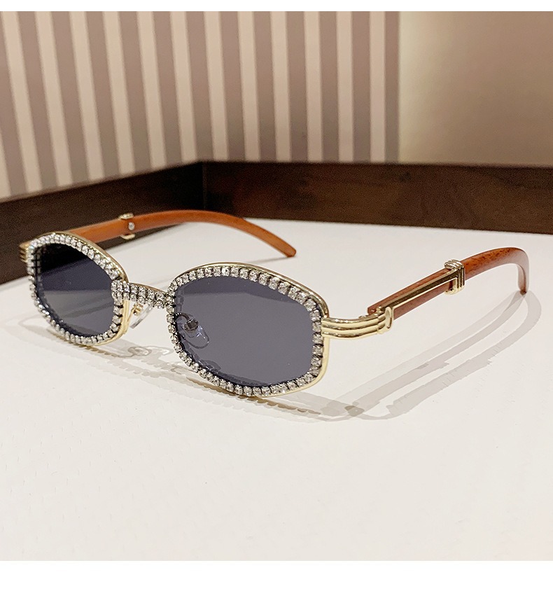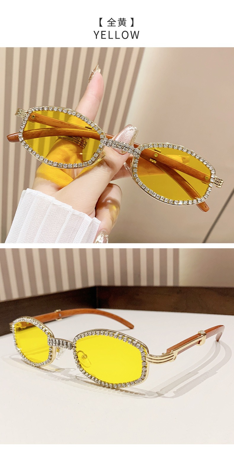 2025 새로운 타원형 선글라스 높은 감각 다이아몬드 유럽과 미국 패션 복고풍 모조 나뭇결 거울 다리 금속 선글라스