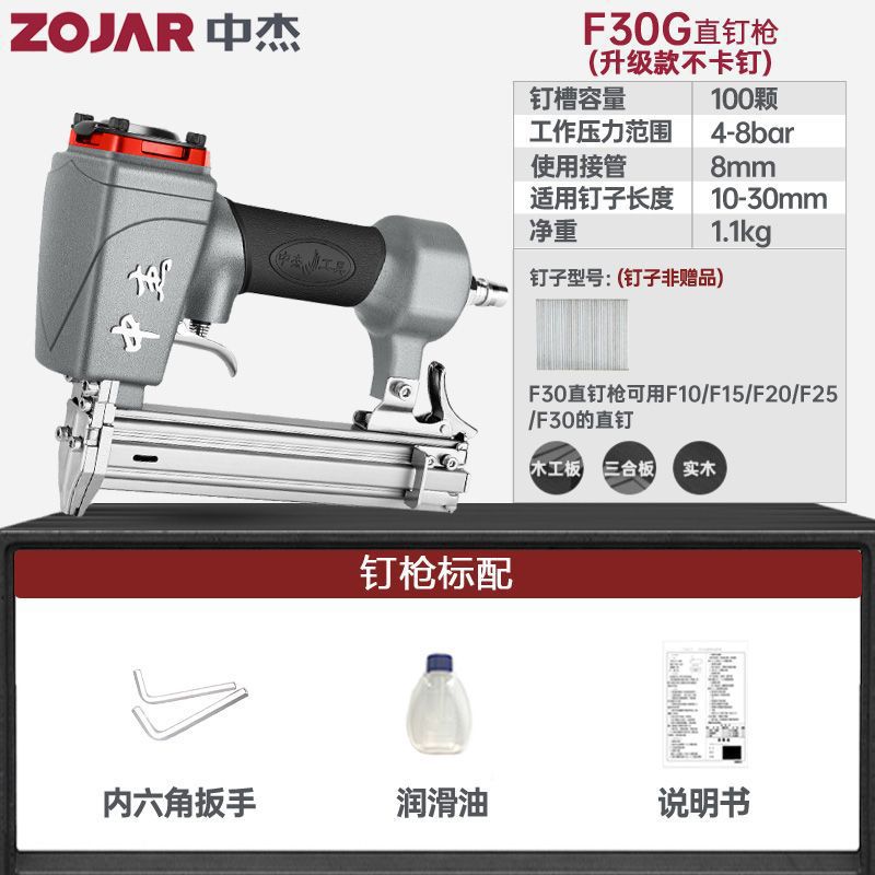 Zhongjie F30 에어 네일 건 공압 T50 스트레이트 네일 건 스틸 네일 건 천장 목공 장식 코드 네일 모기 네일 건 스틸 행 건스토어 가기