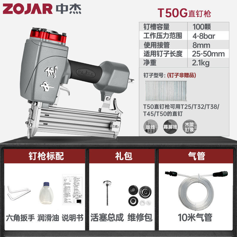 • T50G 직선 네일 건(네일 걸림 없음) - 단일 건 + 링 백 + 발사 핀 + 공기 파이프 10m개