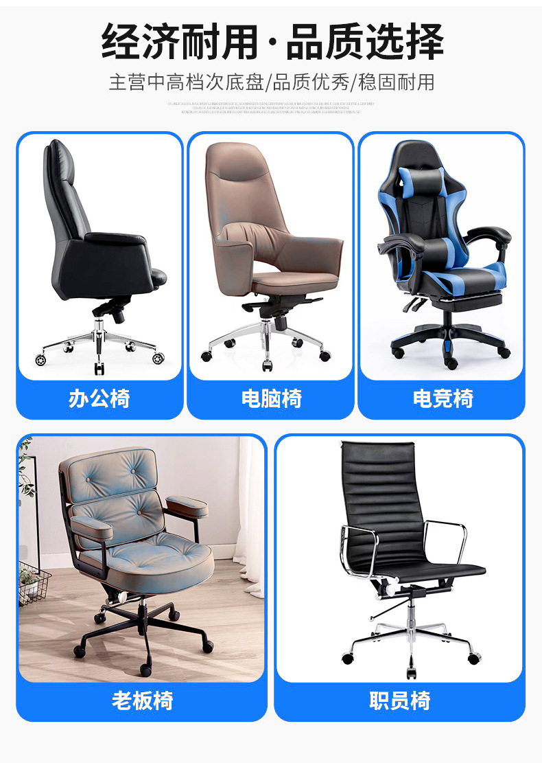 Haoshun 나비 섀시 3단 잠금 베이스 인체공학적 의자 컴퓨터 의자 원형 디스크 사각형 디스크 핸들 조절식 회전