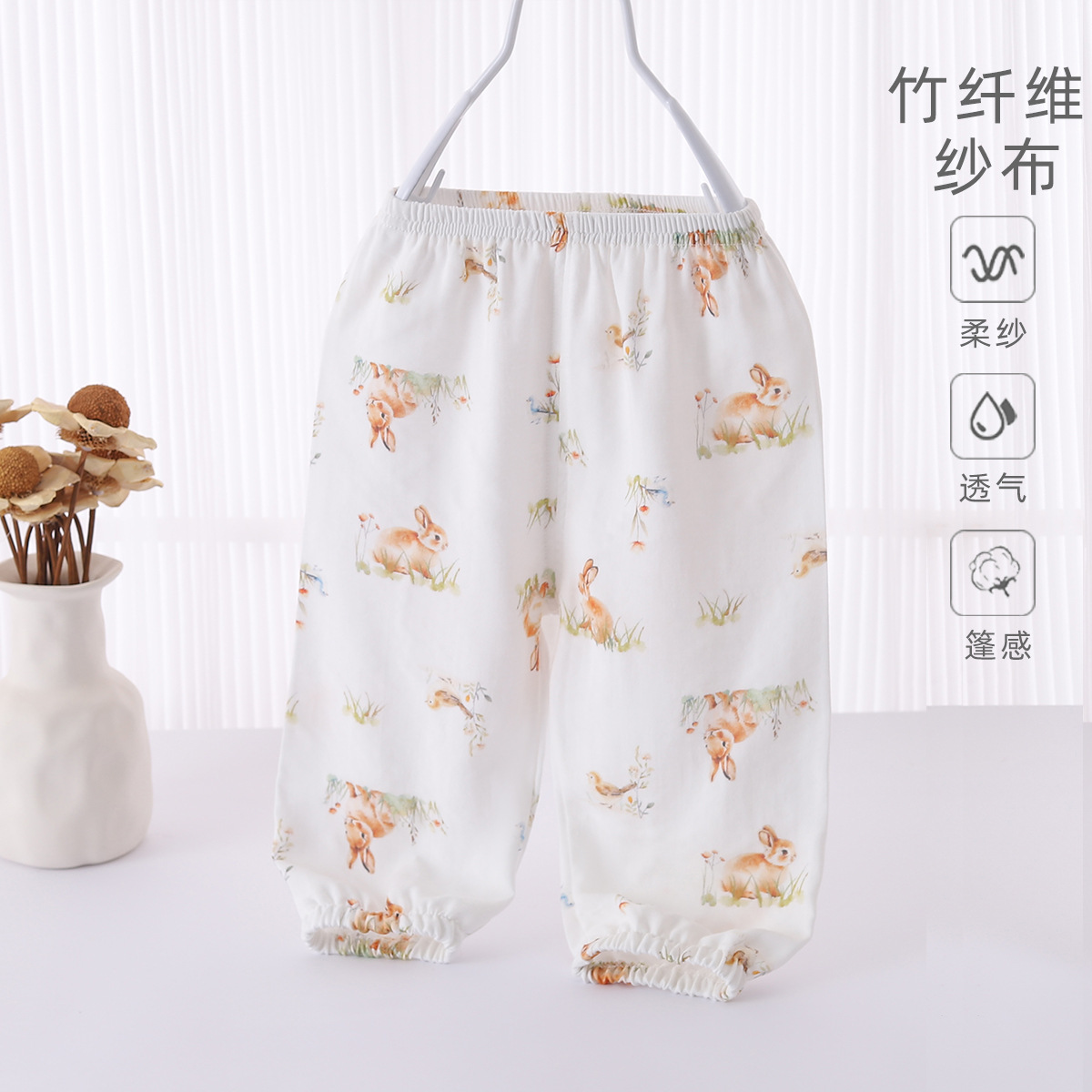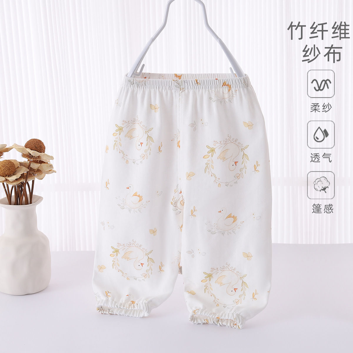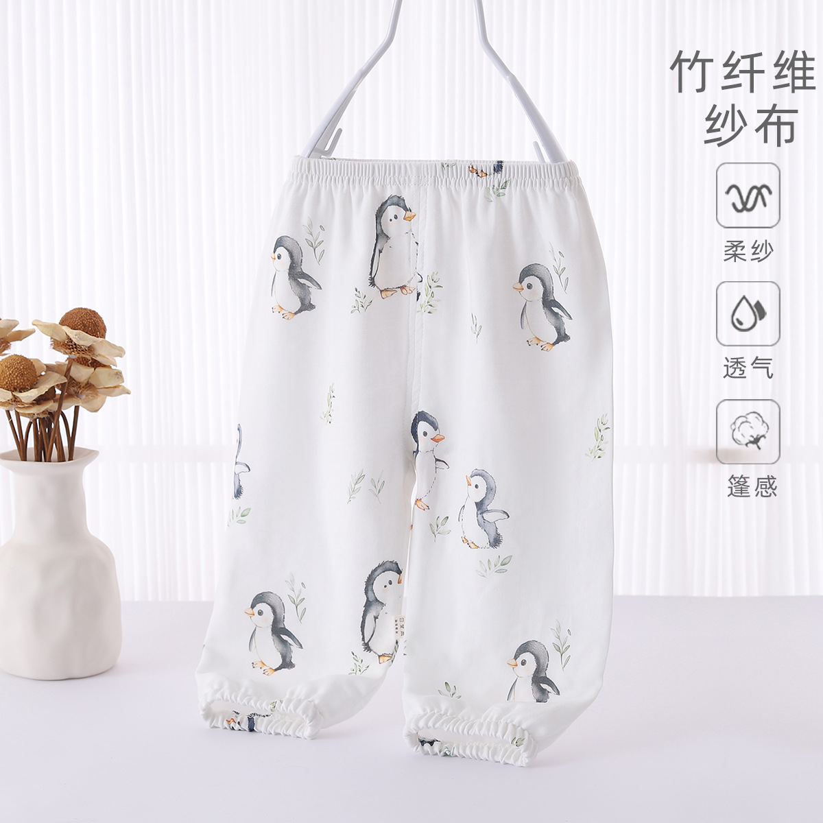 아기 안티-모기 바지 여름 얇은 클래스 소년 소녀를위한 대나무 코튼 바지 아기 어린이 외부 착용 서양식 블루머스스토어 가기