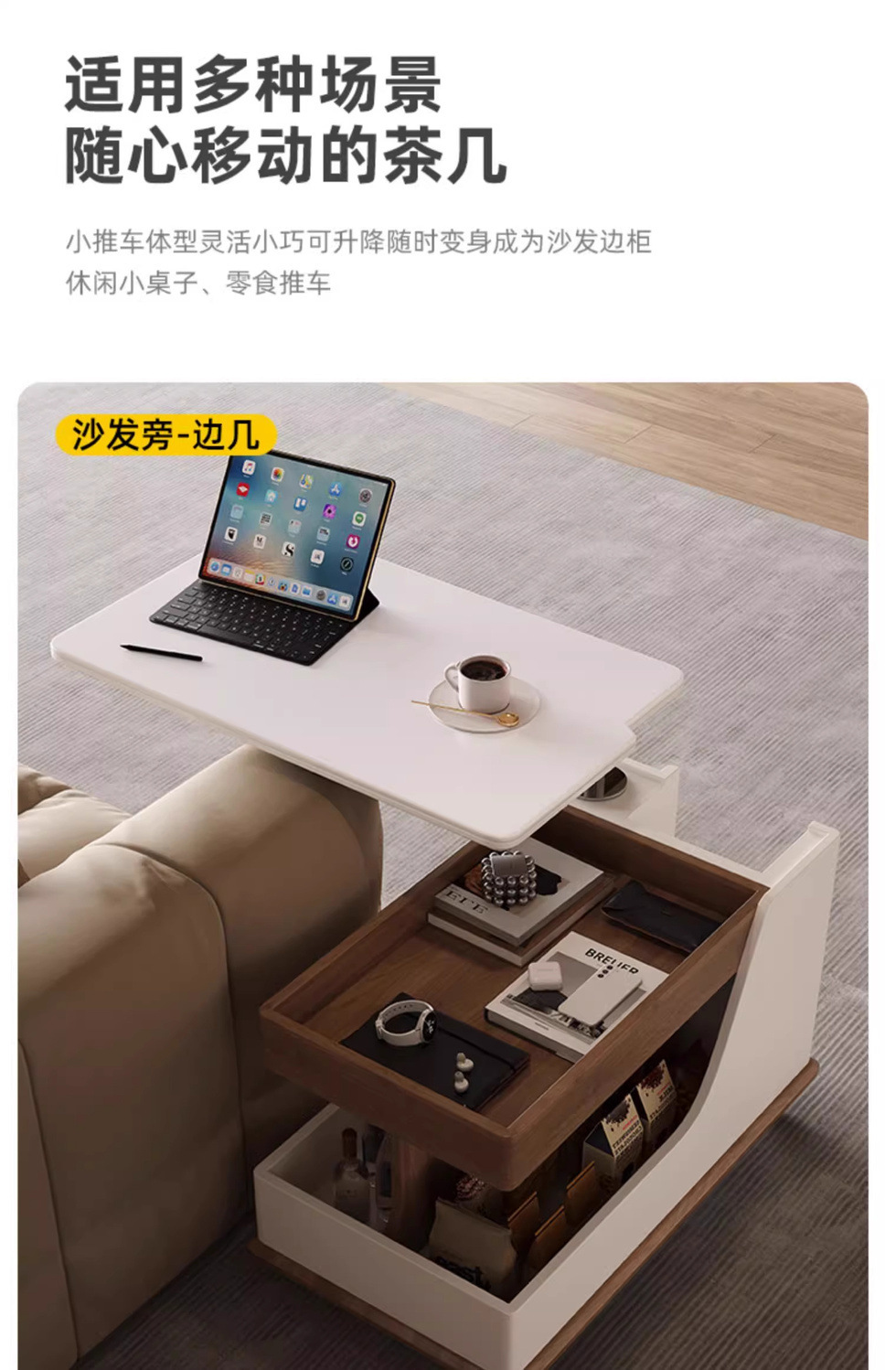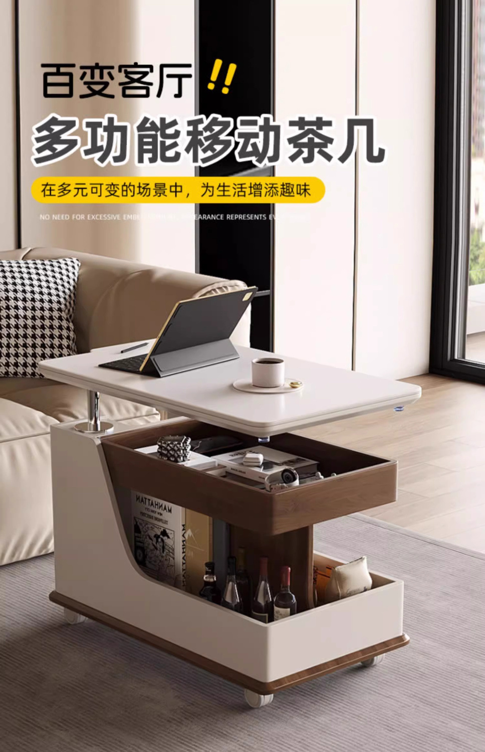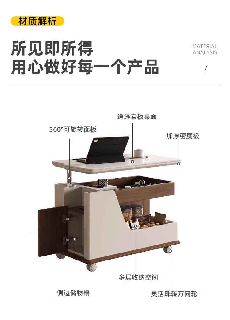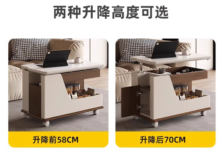 이동식 커피 테이블, 트롤리 사이드 테이블, 다기능 리프팅 커피 테이블, 소형 가정용 티 테이블, 창의적인 거실 사이드 캐비닛