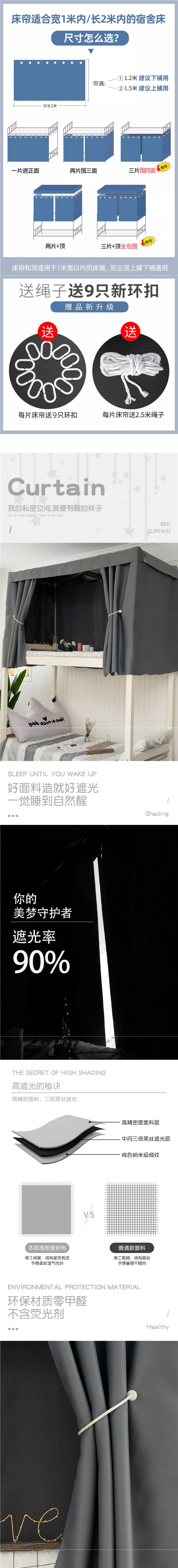 단색 간단한 침대 커튼 대학생 물리학 두꺼운 강한 음영 침실 상부 침대 남성 기숙사 낮은 침대 여성 일반 색상 도매