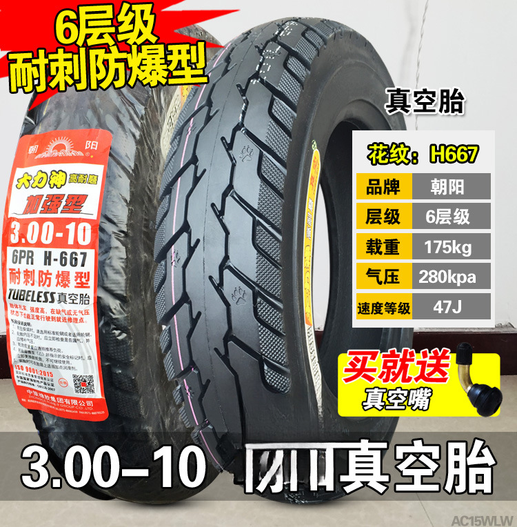 • 3.00-10 6단 찌르기 방지 및 방폭형(공기 없이 주행 가능)(패턴 H667))