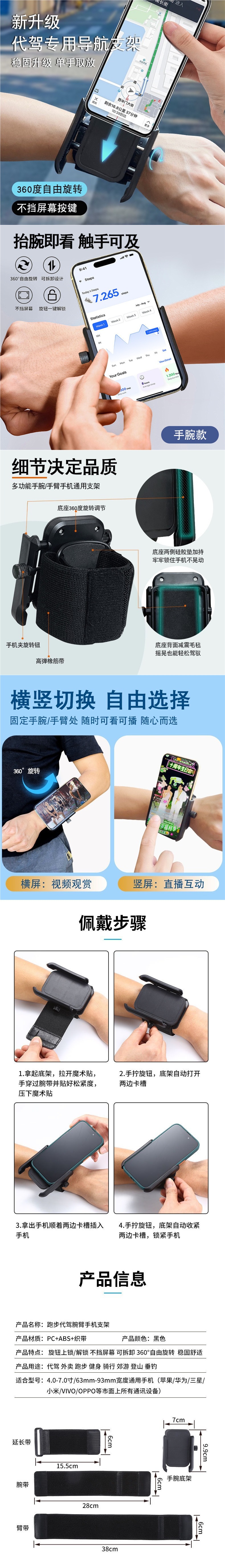 넷 레드 라이브 방송 손목 휴대 전화 브래킷 회전 가능한 운전 야외 달리기 스포츠 춤 손목 손 도매