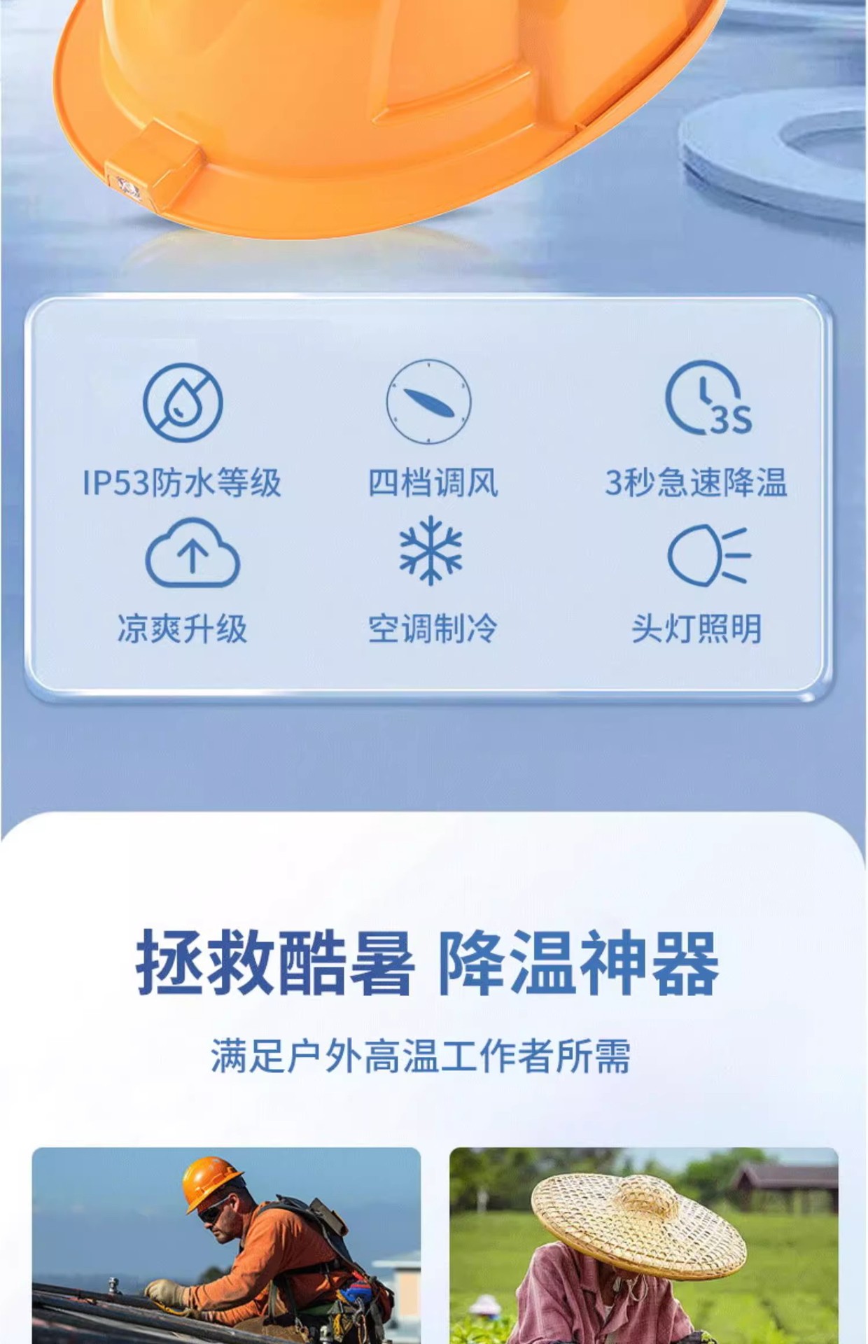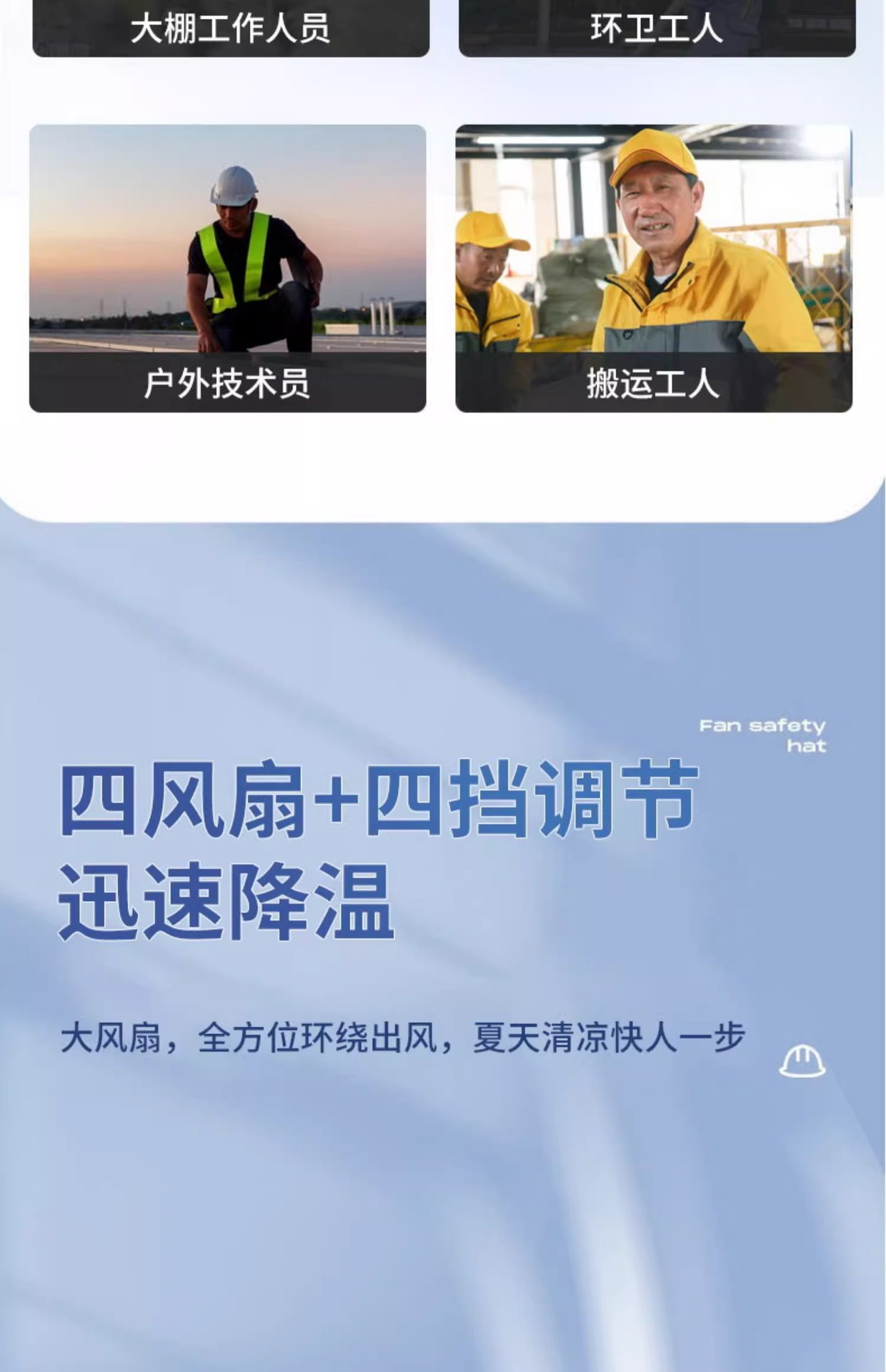 Duo Neng 국가 표준 사이트 팬 안전 헬멧 내장 에어컨 냉각 냉동 조명 여름 방비 헬멧 충전식스토어 가기