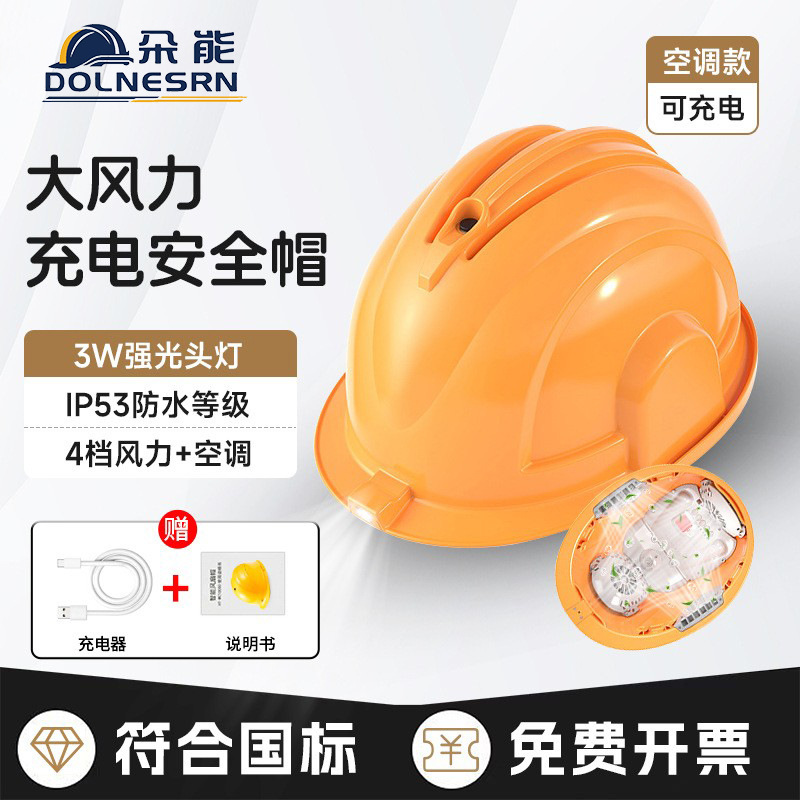 Duo Neng 국가 표준 사이트 팬 안전 헬멧 내장 에어컨 냉각 냉동 조명 여름 방비 헬멧 충전식