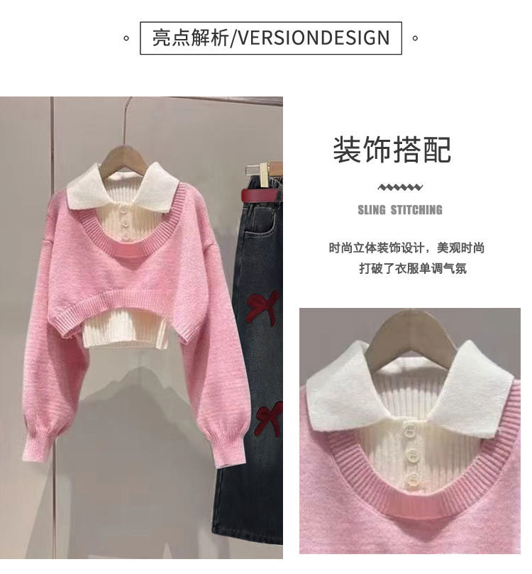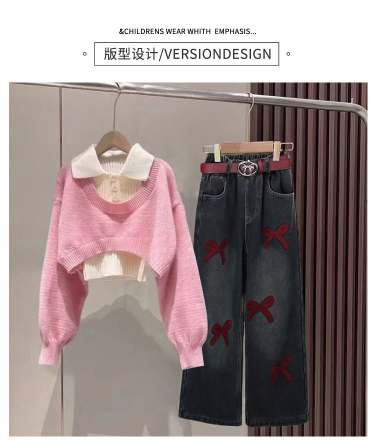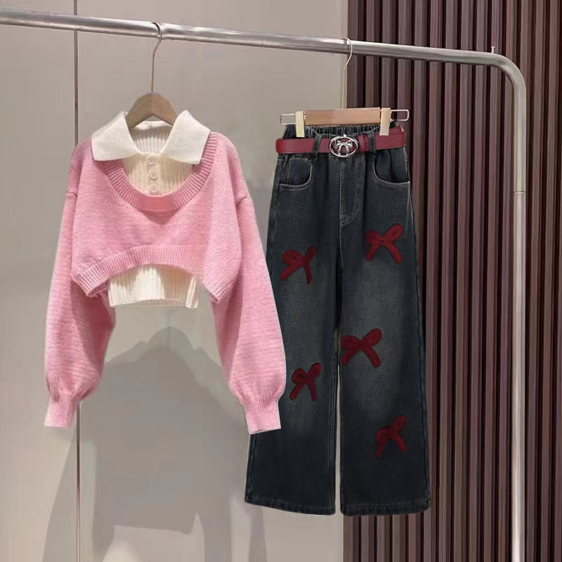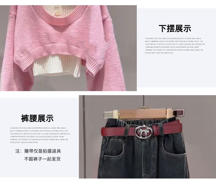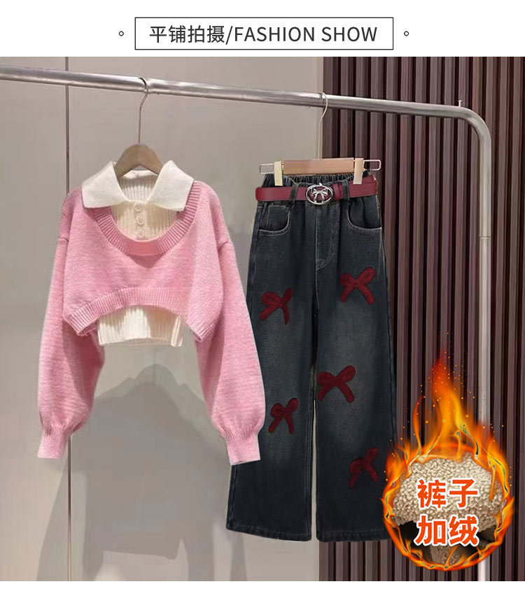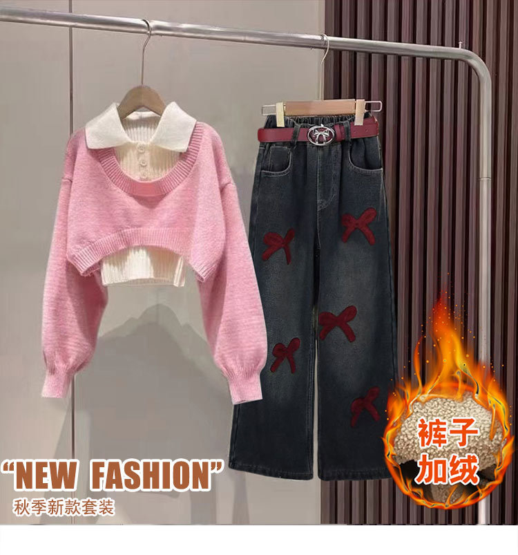 [4860 컬렉션] 기모 깊은 가을과 겨울 스웨터 세트 청바지 2025 신겨울 중다