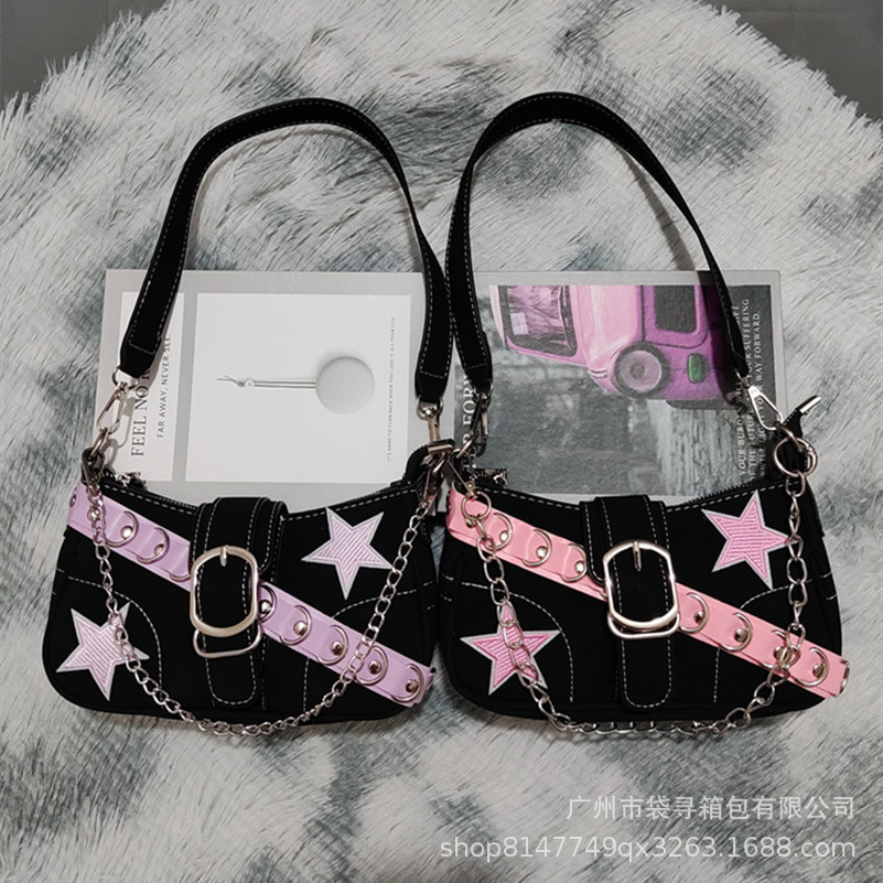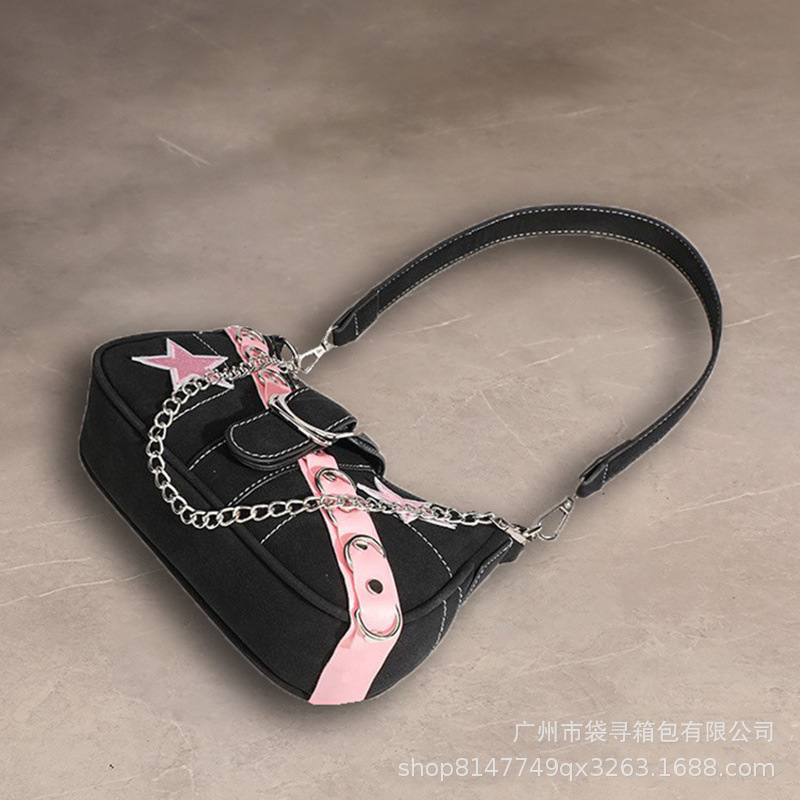 국경 간 틈새 핑크 벨트 체인 새로운 스타 바게트 숄더 백 Y2K 밀레니엄 스타일 핫 소녀 겨드랑이 가방 여성용스토어 가기