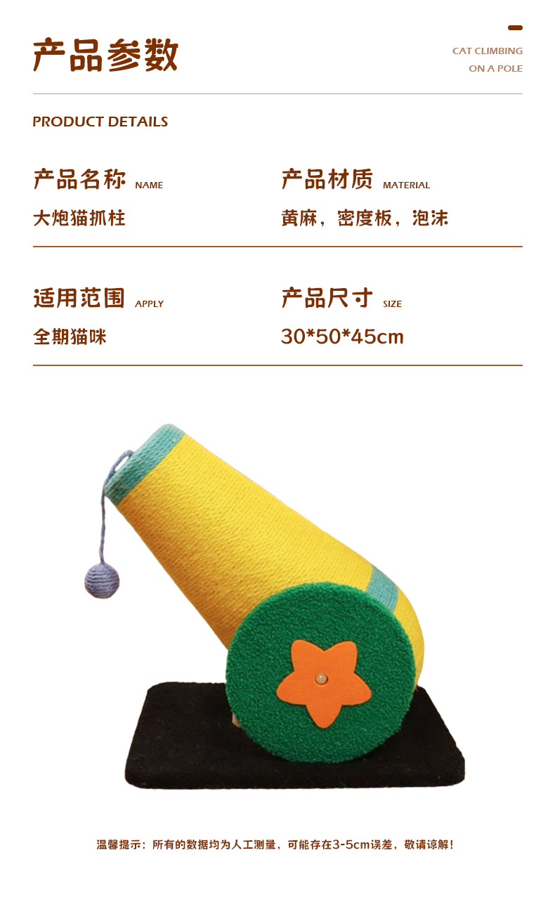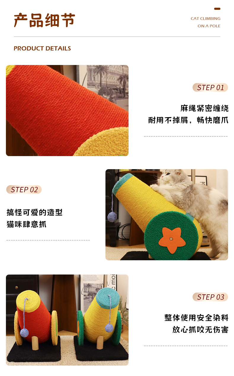 대포 모양의 고양이 스크래치 열 작은 고양이 고양이 둥지 원활한 고양이 스크래치 보드 내마모성 부스러기 고양이 나무 통합 고양이 등반 프레임