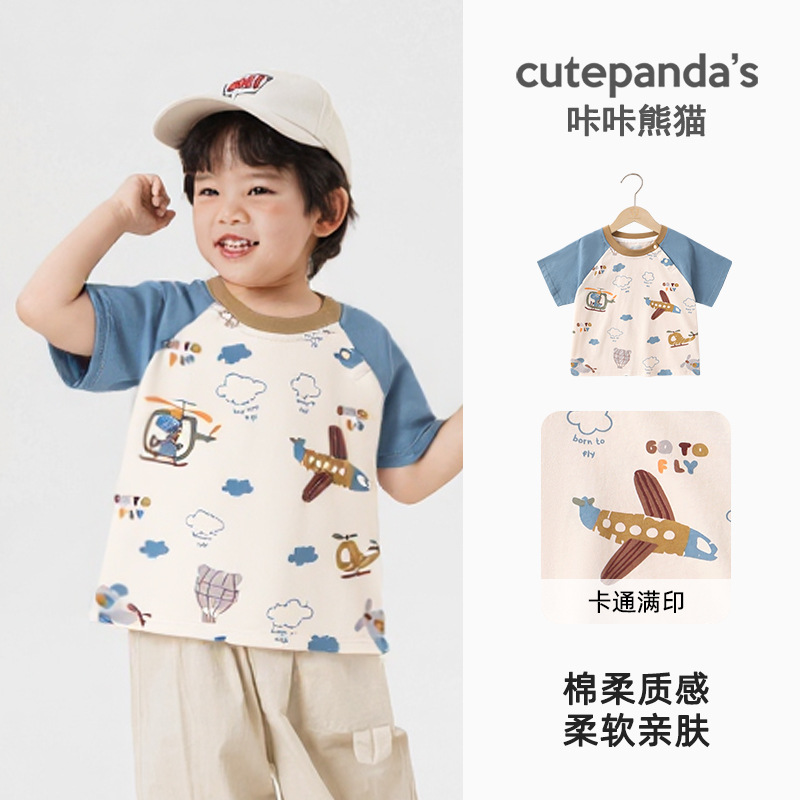 카카 팬더 아기 옷 어린이 반팔 티셔츠 여름 옷 소년 소녀 여름 반소매 최고 아기 어린이 의류스토어 가기