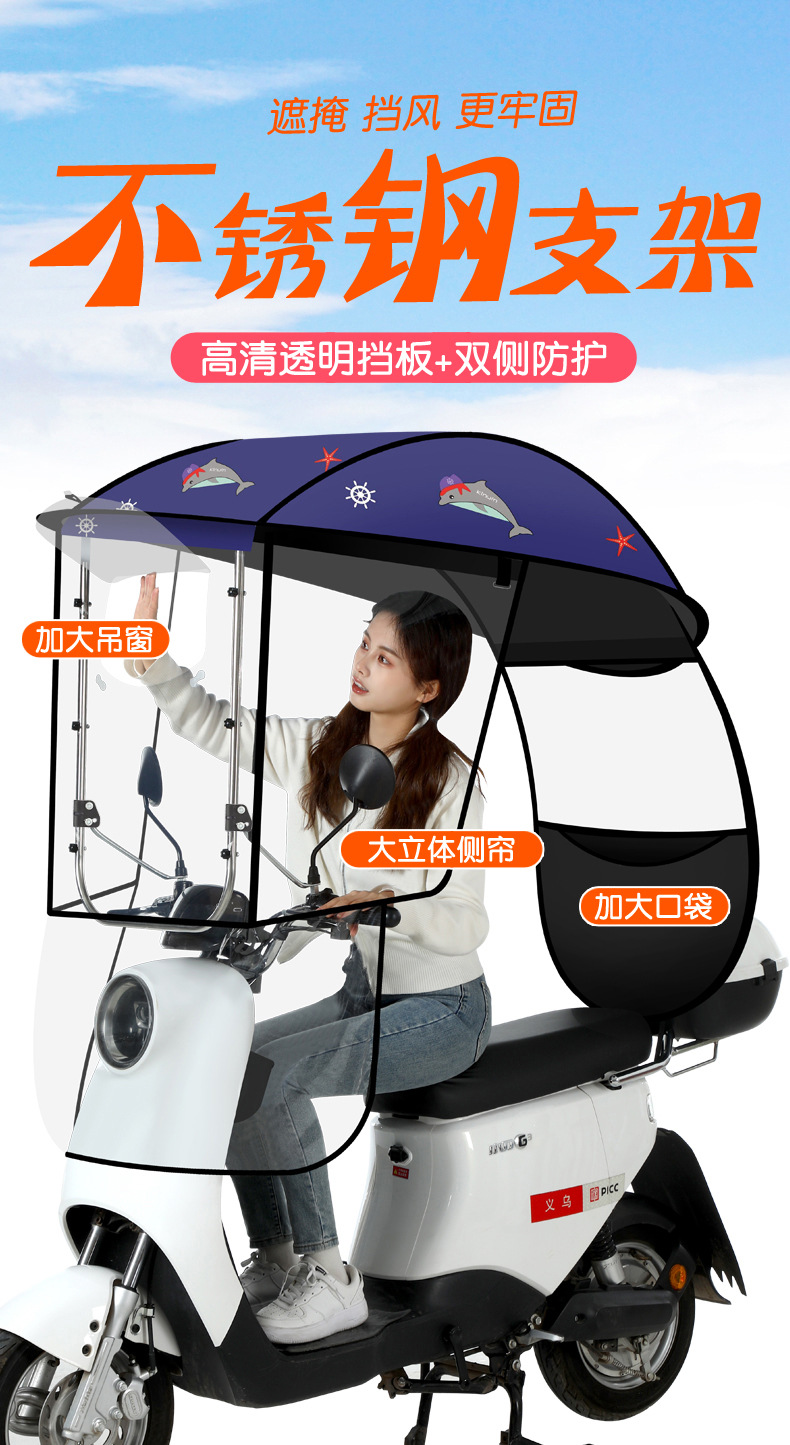 전기 자동차 방수 차고, 접이식 오토바이 비 차단 및 바람 차단, 새로운 배터리 자동차 자외선 차단 우산
