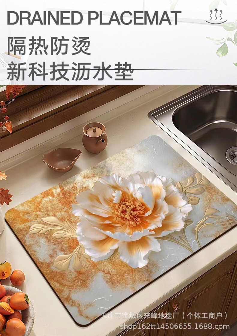 3D 플라워 Diatom 진흙 건조 매트 식탁 단열재 방화 테이블 매트 주방 가정용 흡수성 빠른 건조 장소