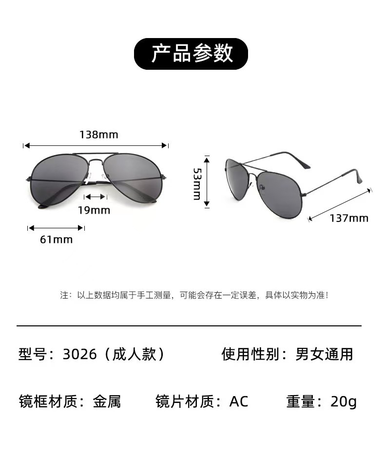 3026 두꺼비 선글라스 클래식 패션 남녀 공용 컬러 반사 안경 3025 동일 스타일 레트로 파일럿 선글라스
