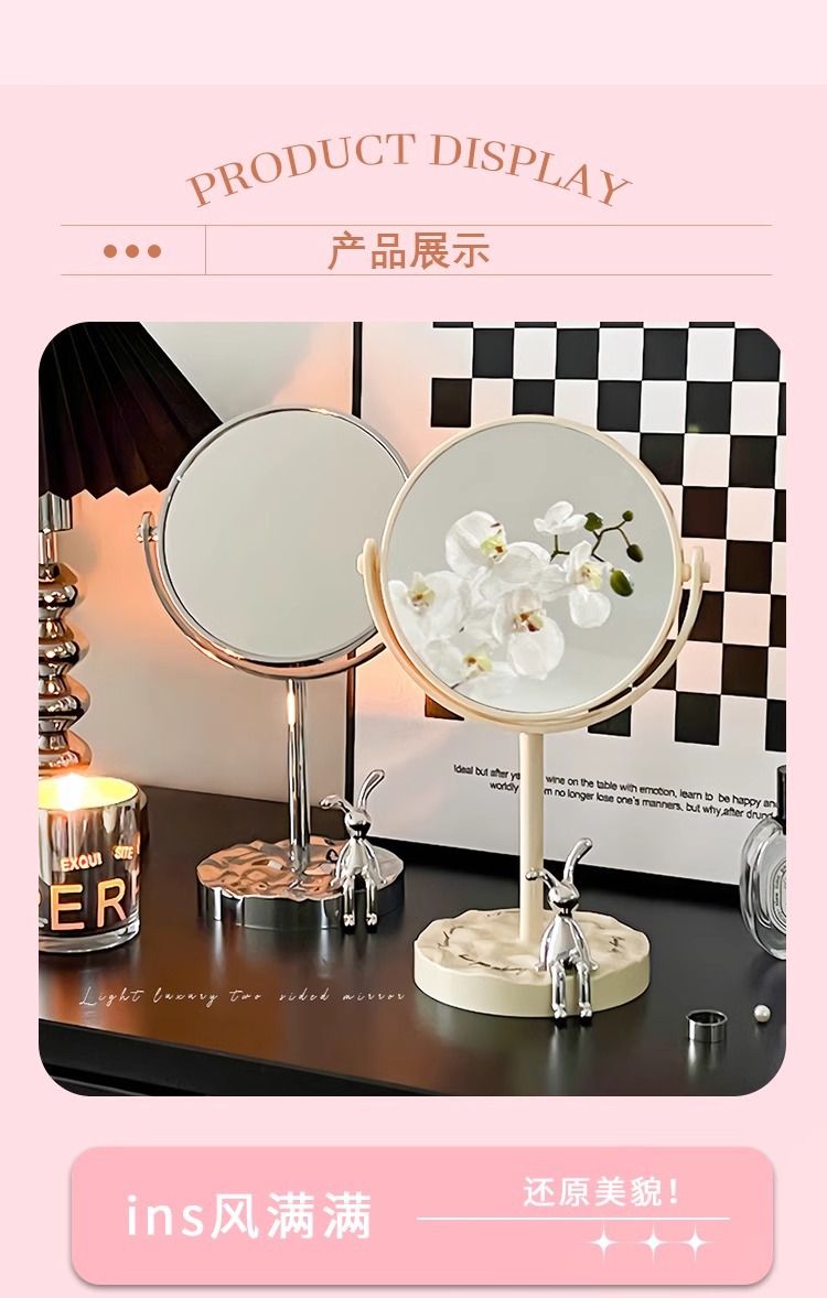 데스크탑 메이크업 미러 데스크탑 가정용 HD 돋보기 거울 회전 가능한 기숙사 휴대용 거울 양면 거울 공주스토어 가기