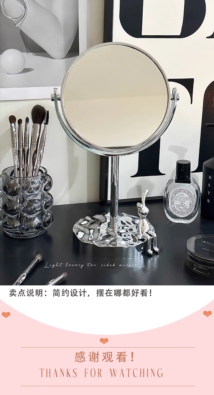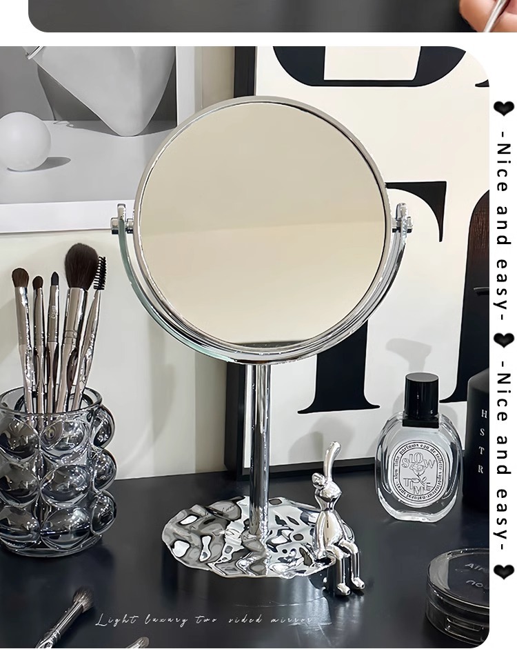데스크탑 메이크업 미러 데스크탑 가정용 HD 돋보기 거울 회전 가능한 기숙사 휴대용 거울 양면 거울 공주