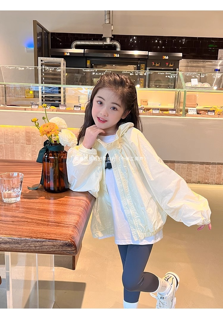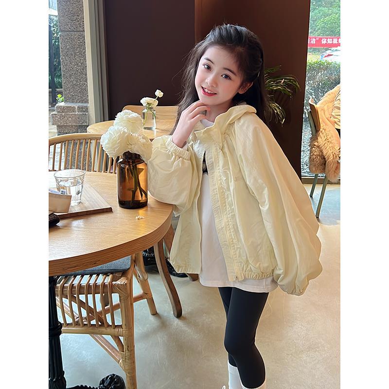 어린이 태양 보호 의류 한국 스타일 2025 새로운 소녀 지퍼 탑 카디건 코트 태양 보호 의류 얇은 도매스토어 가기