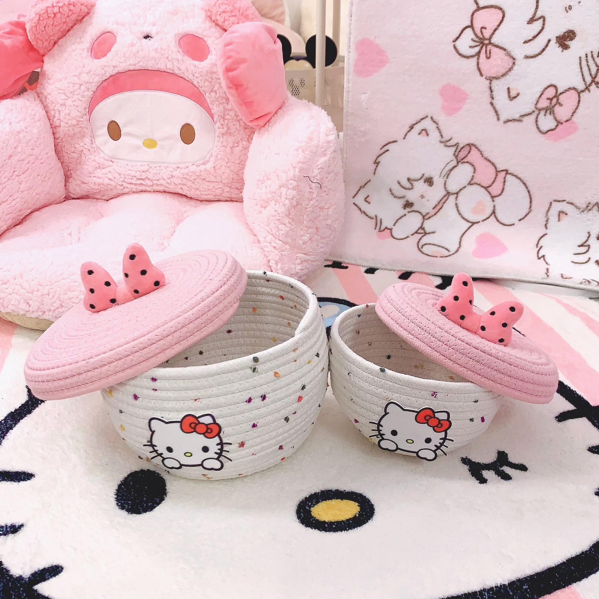 [신간] 귀여운 목화 짠 저장 바구니 침실 저장 상자 장난감 데스크탑 잡화 저장 바구니 스낵 바구니