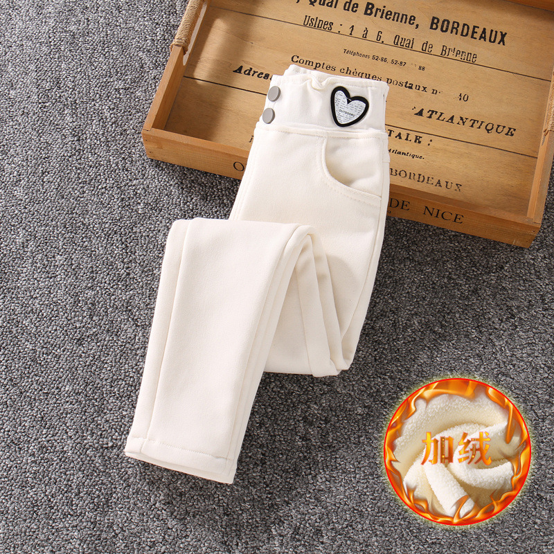 소녀 바지 가을과 겨울 착용 중년 어린이 외복 슬림 핏 서양식 어린 소녀의 스트레치 레깅스 캐주얼 기모 타이트 바지