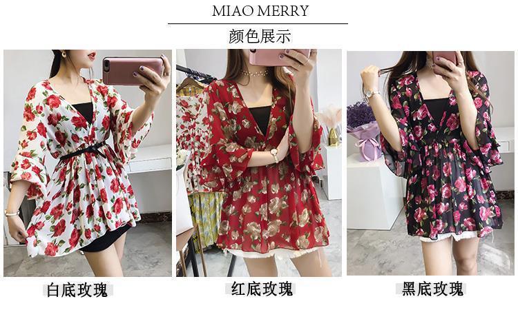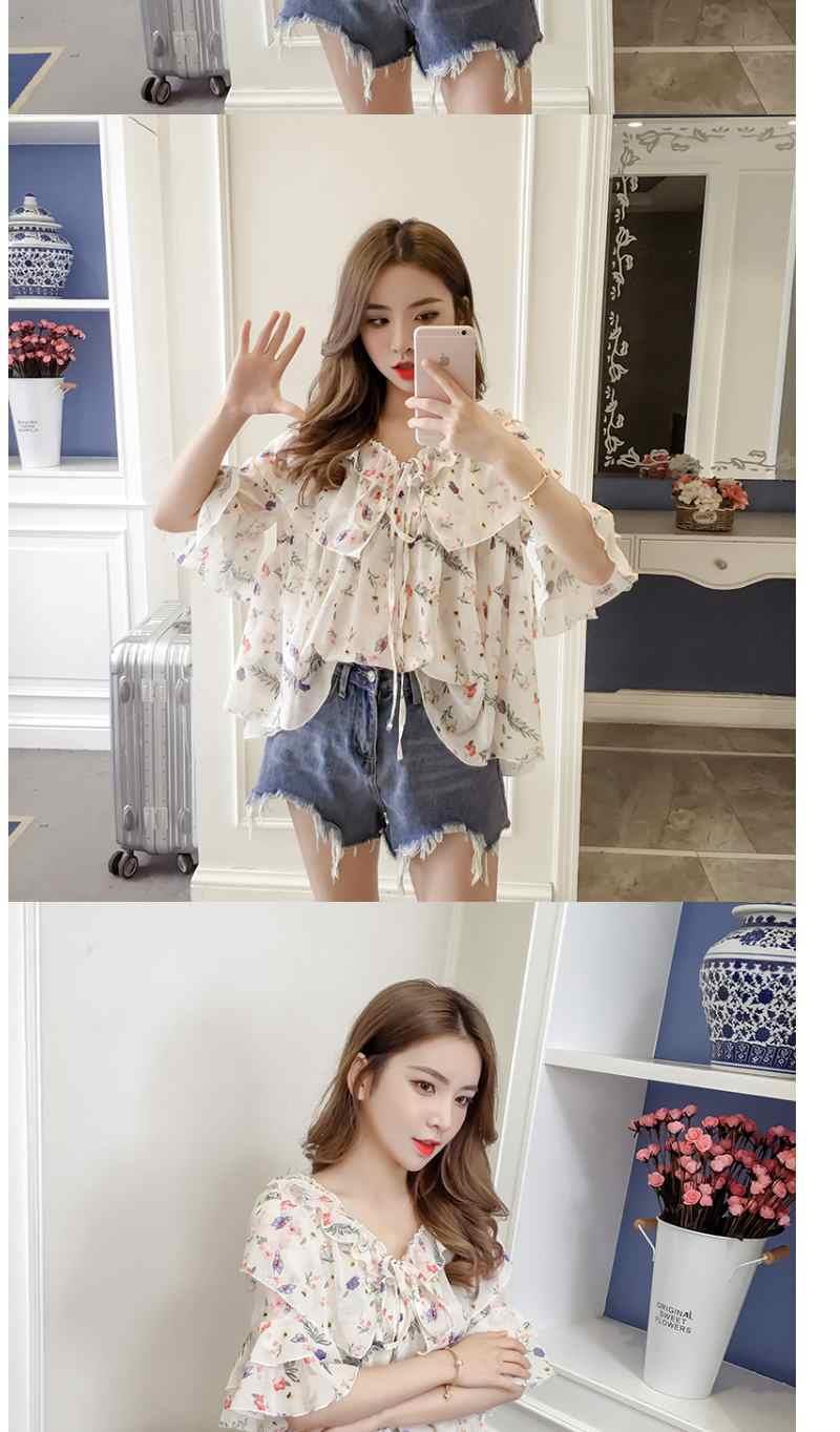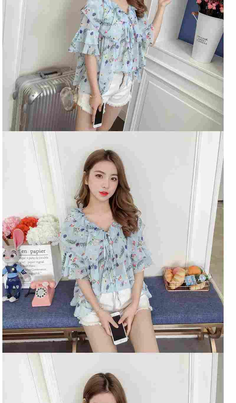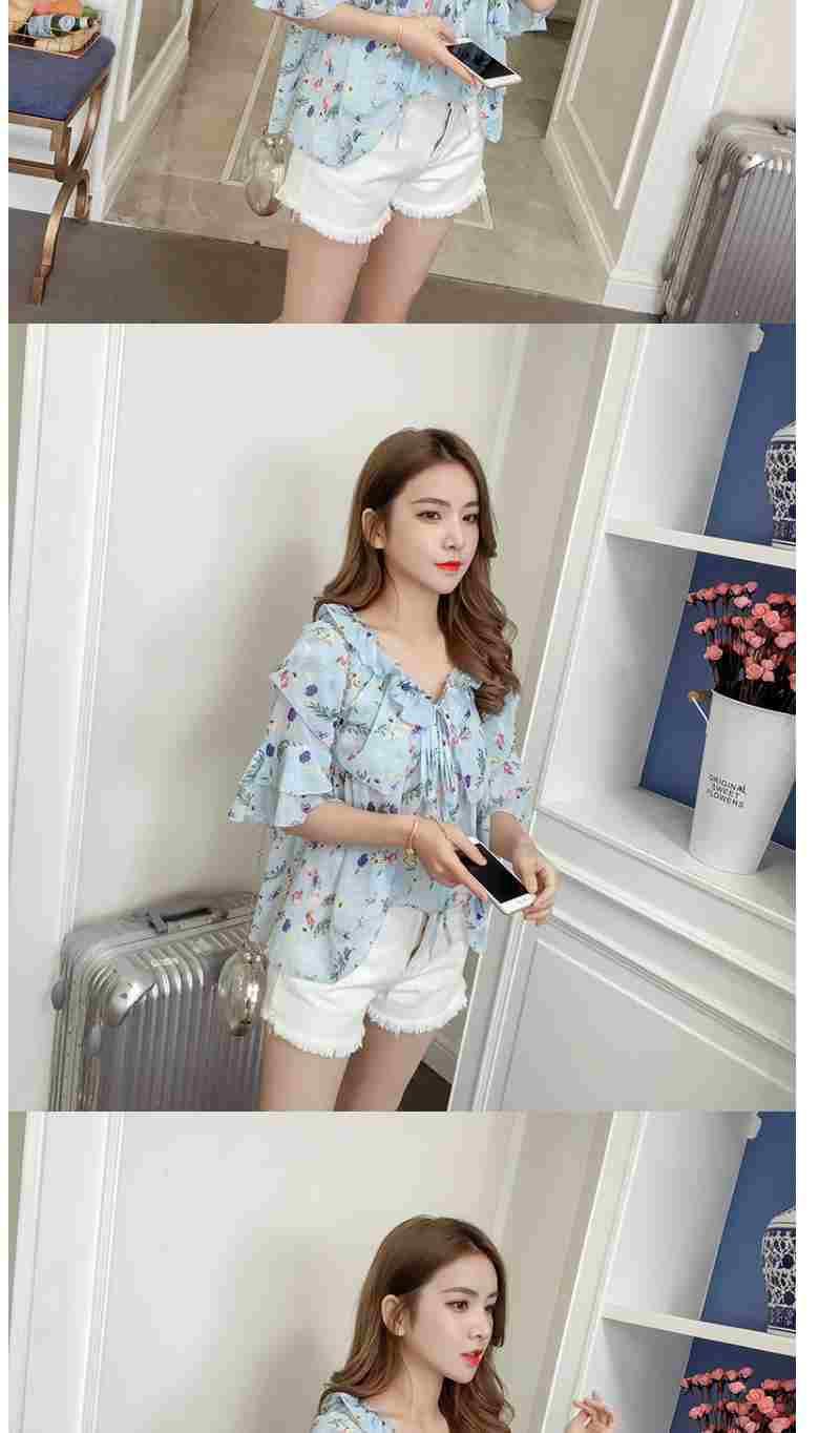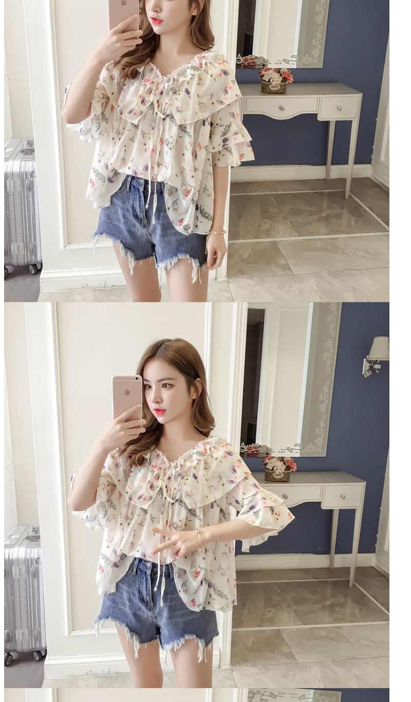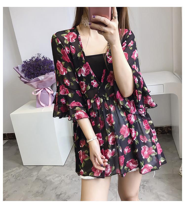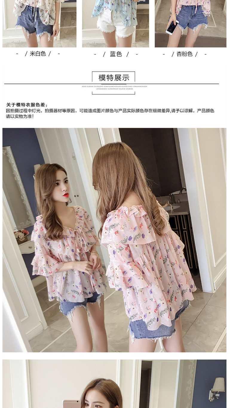 2024 여름 새로운 한국 스타일 달콤한 느슨한 꽃 셔츠 반팔 쉬폰 셔츠 여성용 슈퍼 요정 트럼펫 슬리브 트렌디 탑스토어 가기